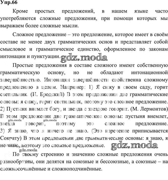 ОТВЕТ на задание № 66 Учебник по Русскому языку 9 класс Бархударов