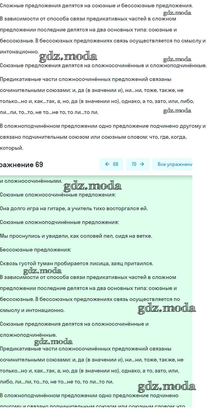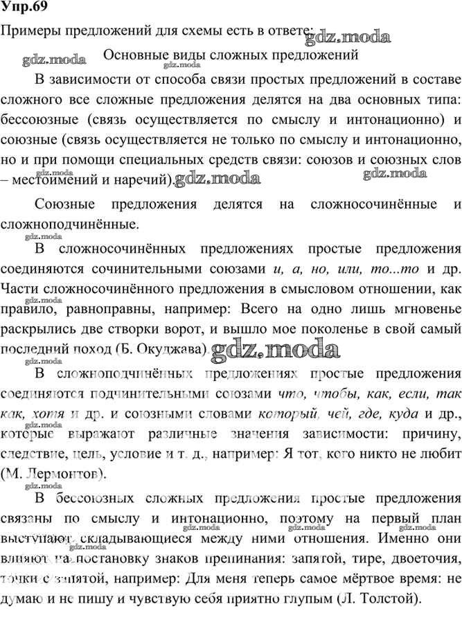 ОТВЕТ на задание № 69 Учебник по Русскому языку 9 класс Бархударов