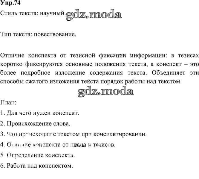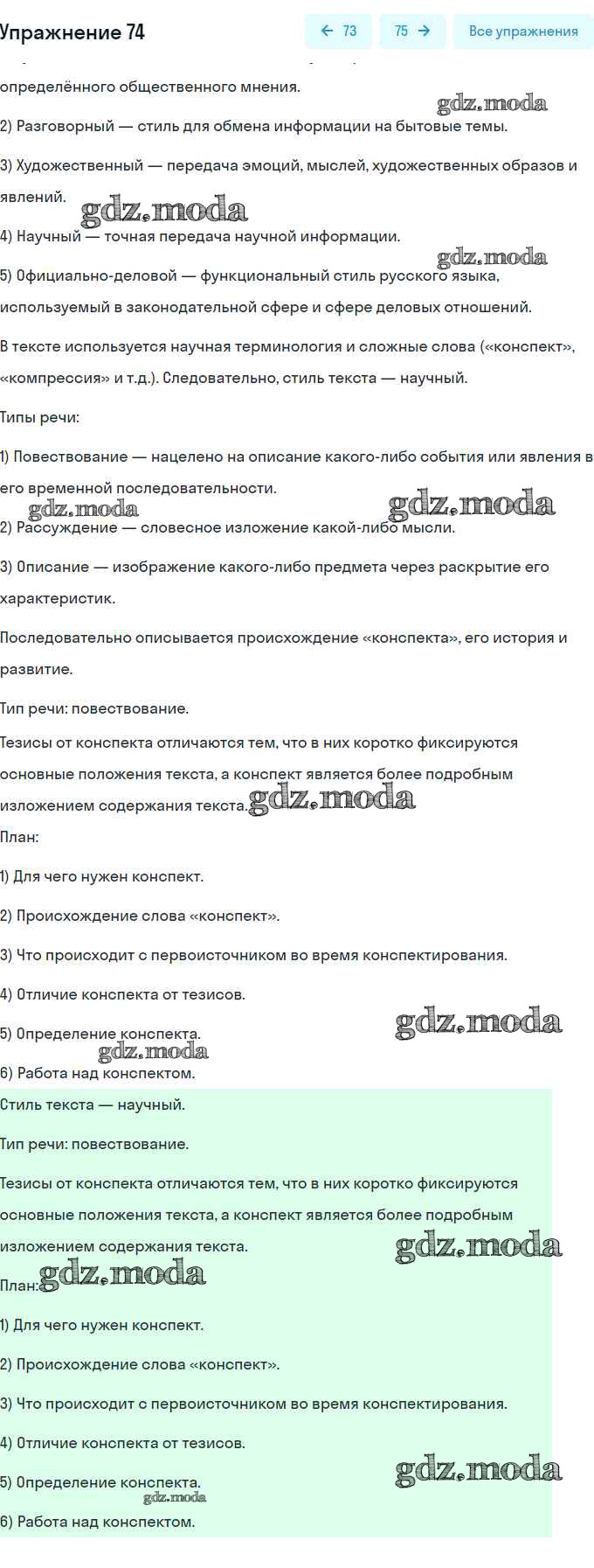 ОТВЕТ на задание № 74 Учебник по Русскому языку 9 класс Бархударов