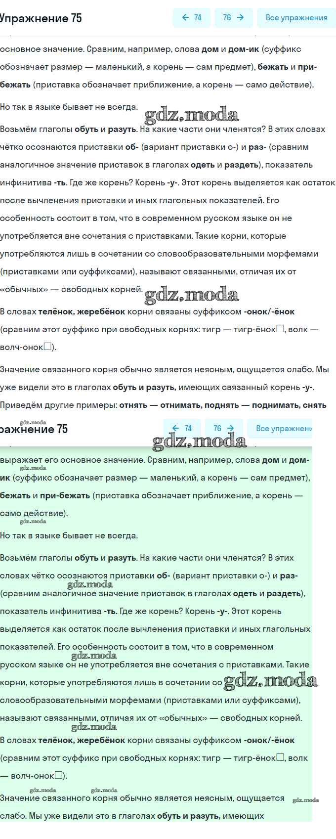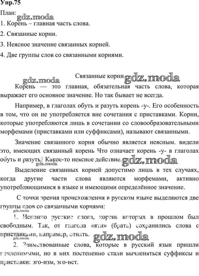 ОТВЕТ на задание № 75 Учебник по Русскому языку 9 класс Бархударов