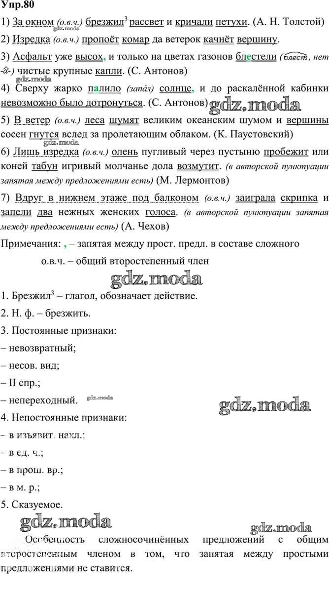 ОТВЕТ на задание № 80 Учебник по Русскому языку 9 класс Бархударов