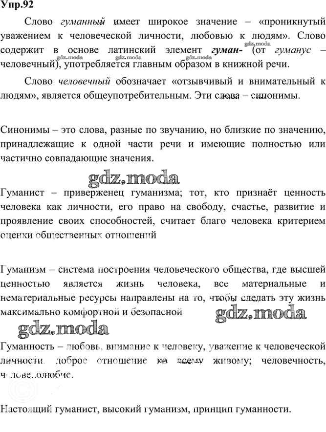 ОТВЕТ на задание № 92 Учебник по Русскому языку 9 класс Бархударов