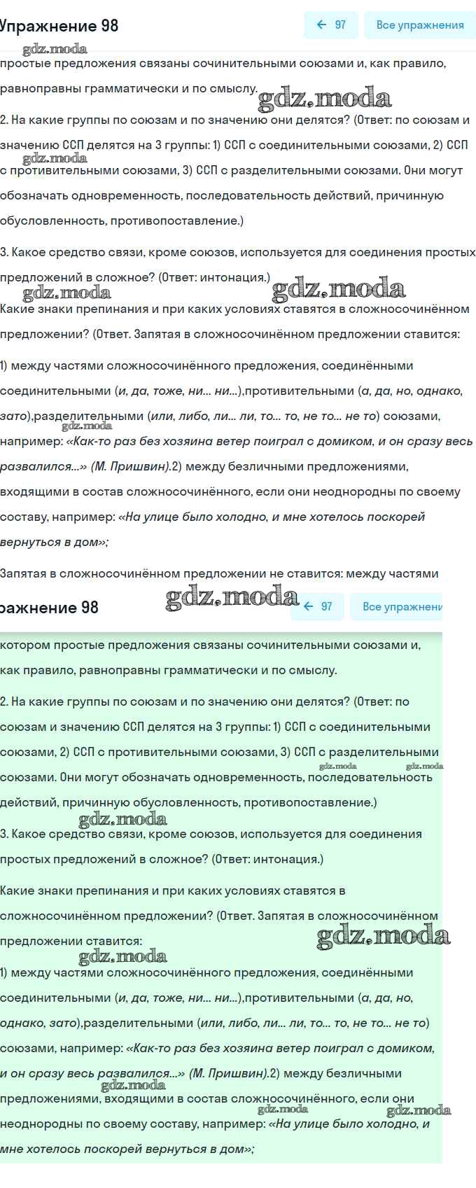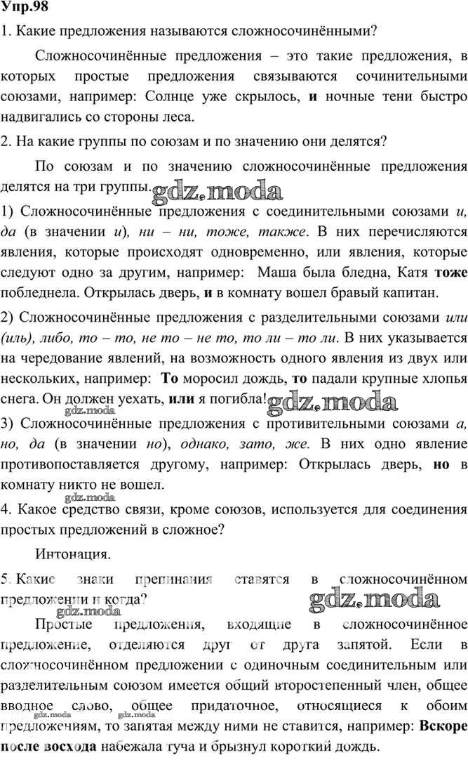 ОТВЕТ на задание № 98 Учебник по Русскому языку 9 класс Бархударов