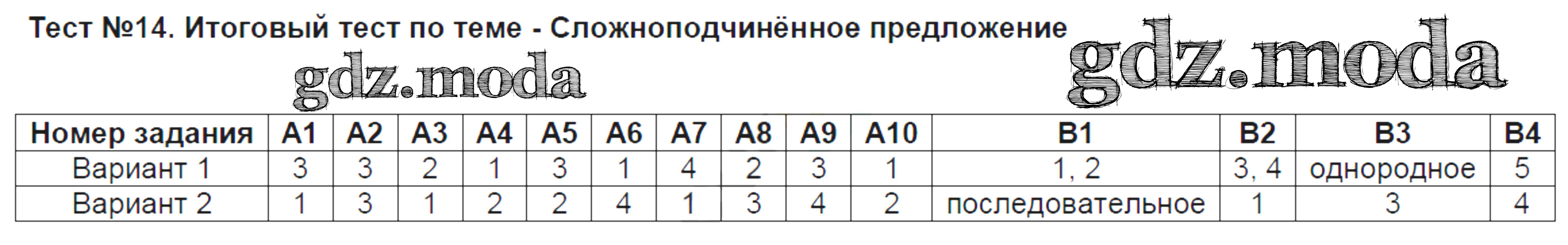 ОТВЕТ на задание № 14 Контрольно-измерительные материалы (КИМ) по Русскому языку 9 класс Никулина