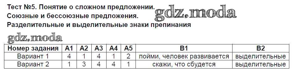 ОТВЕТ на задание № 5 Контрольно-измерительные материалы (КИМ) по Русскому языку 9 класс Никулина