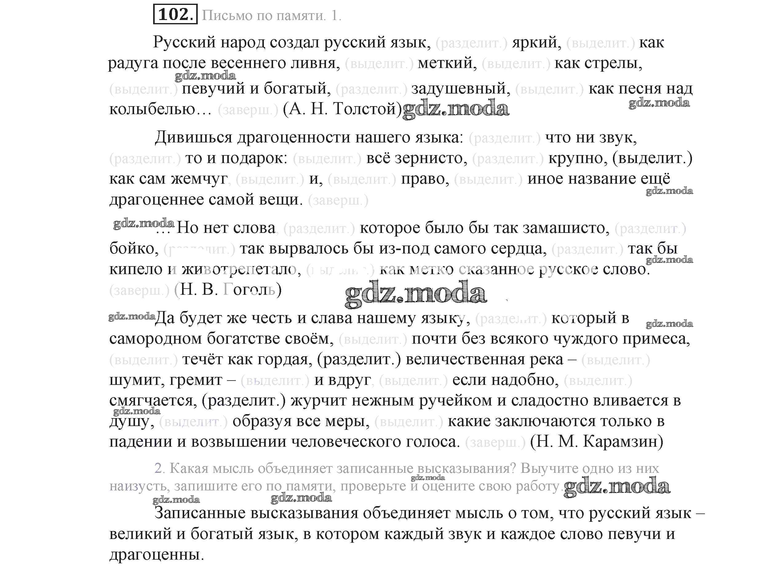 ОТВЕТ на задание № 102 Учебник по Русскому языку 9 класс Львова