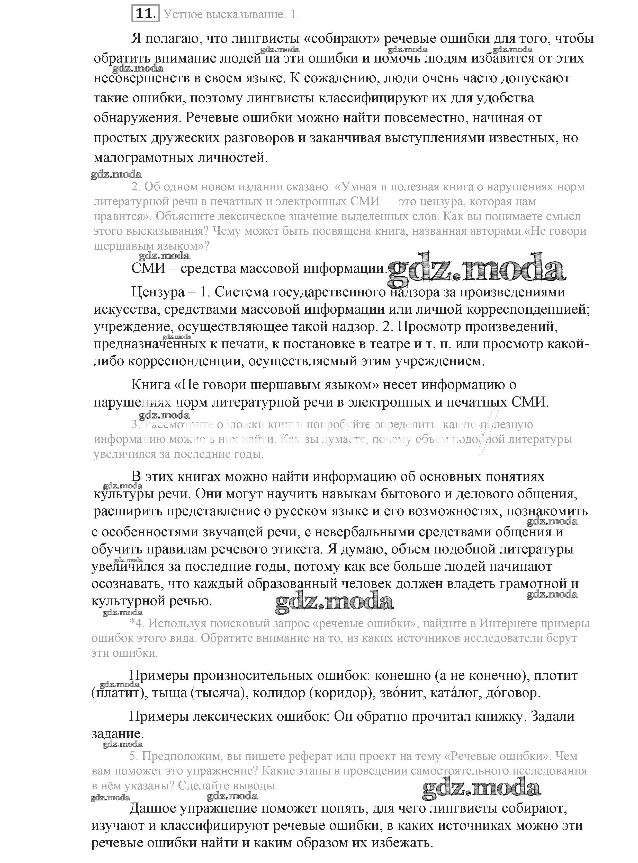 ГДЗ решение к заданию № 11 Русский язык 9 класс Львова С.И. Мнемозина 2016 Часть 1 ФГОС бесплатно на гдз.мода!