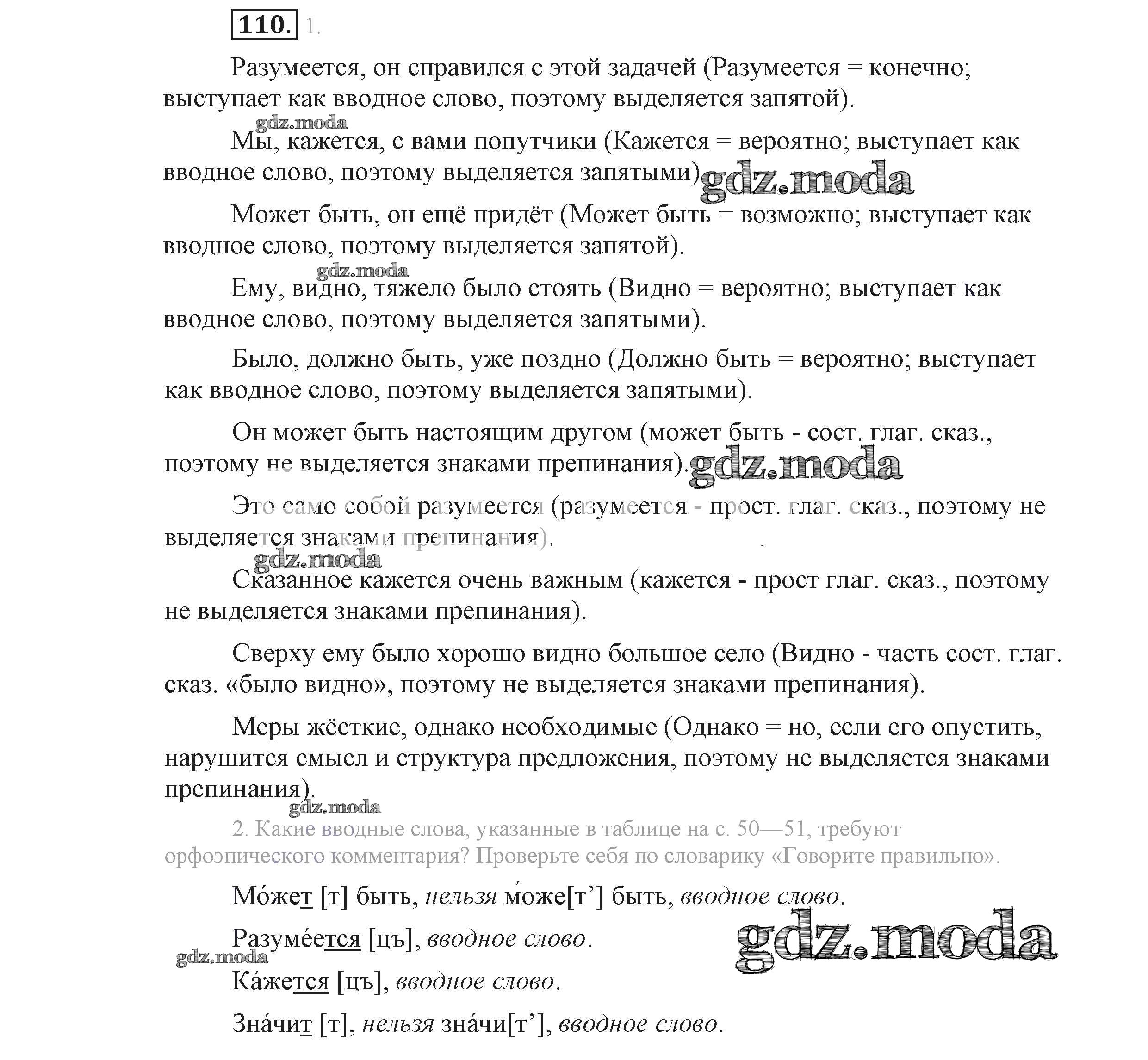 ГДЗ решение к заданию № 110 Русский язык 9 класс Львова С.И. Мнемозина 2016 Часть 1 ФГОС бесплатно на гдз.мода!