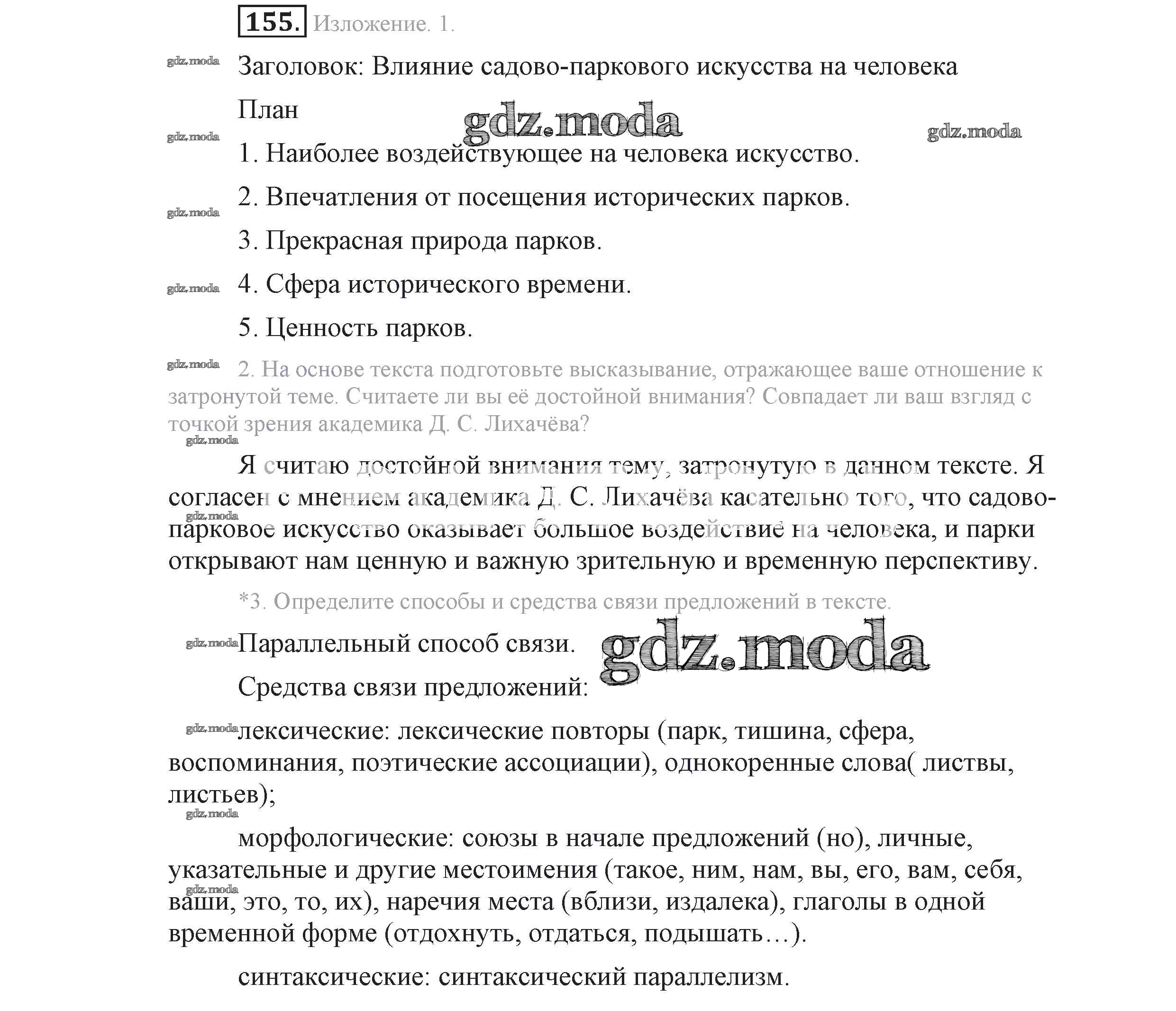 ОТВЕТ на задание № 155 Учебник по Русскому языку 9 класс Львова