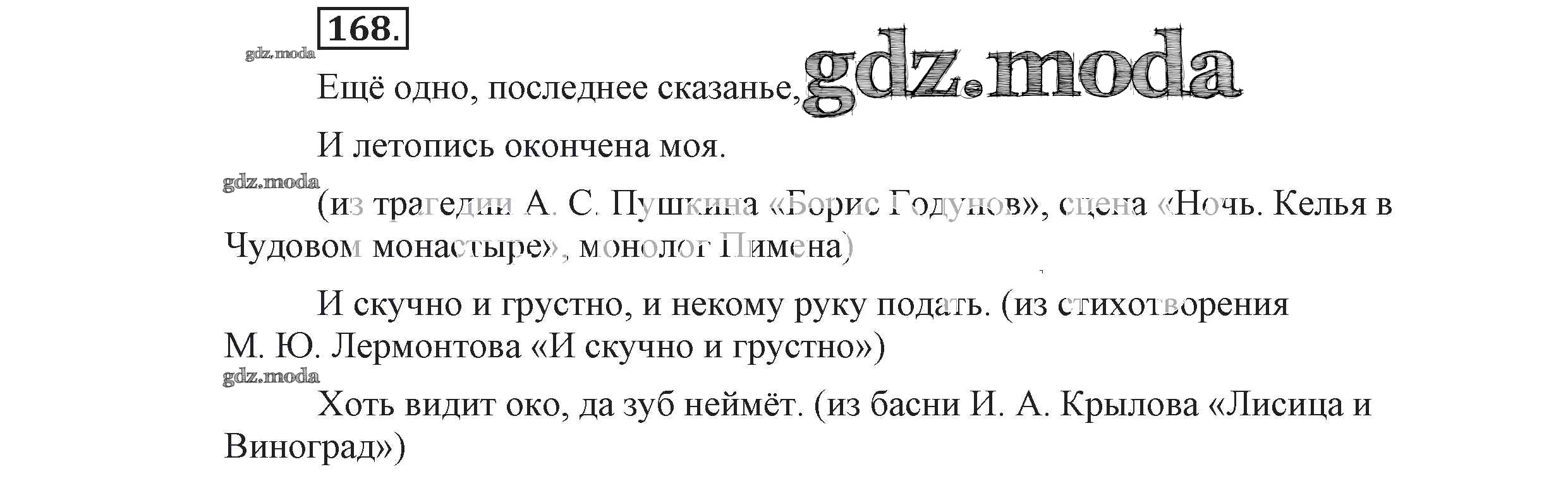 ОТВЕТ на задание № 168 Учебник по Русскому языку 9 класс Львова