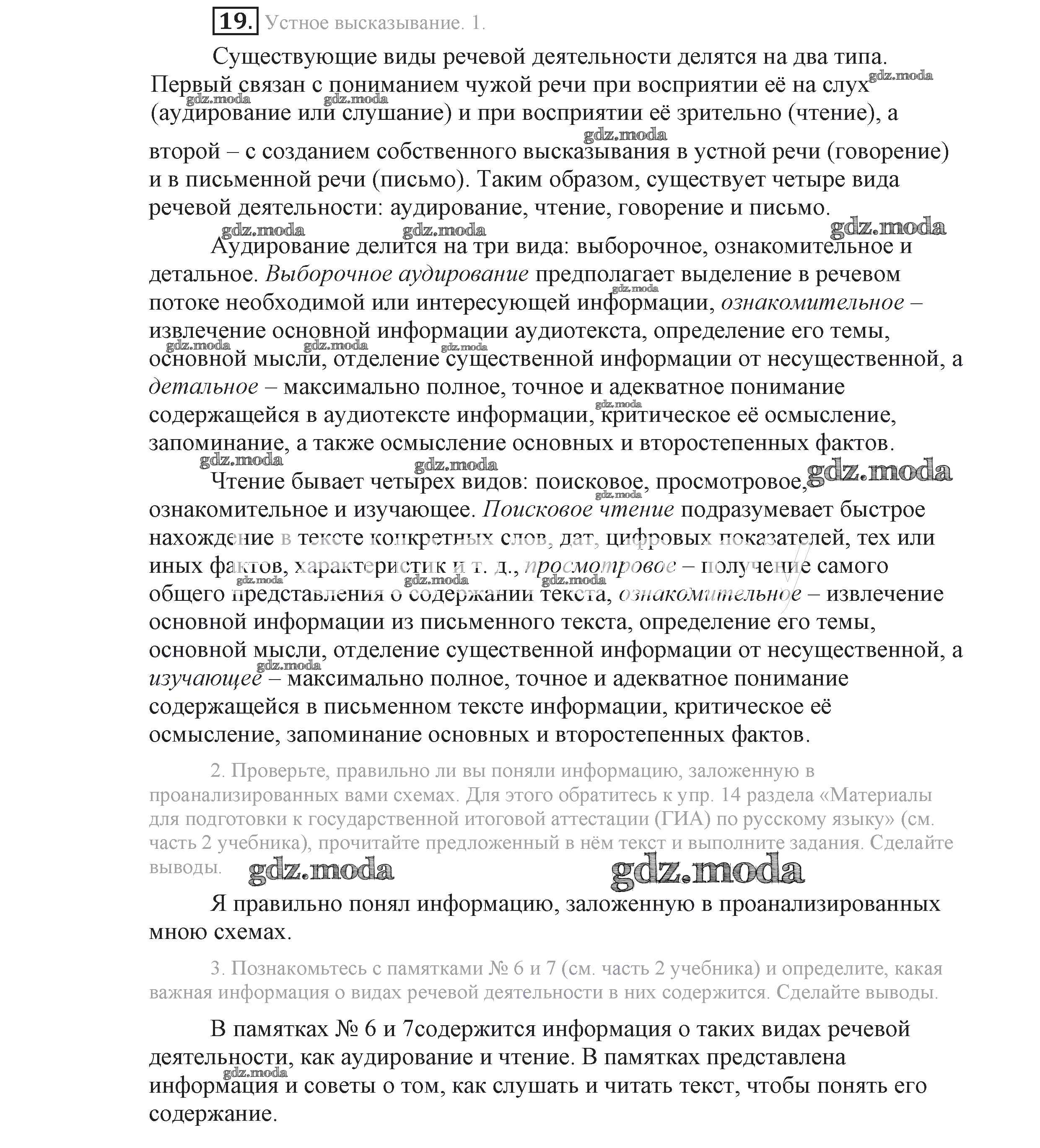 ГДЗ решение к заданию № 19 Русский язык 9 класс Львова С.И. Мнемозина 2016 Часть 1 ФГОС бесплатно на гдз.мода!