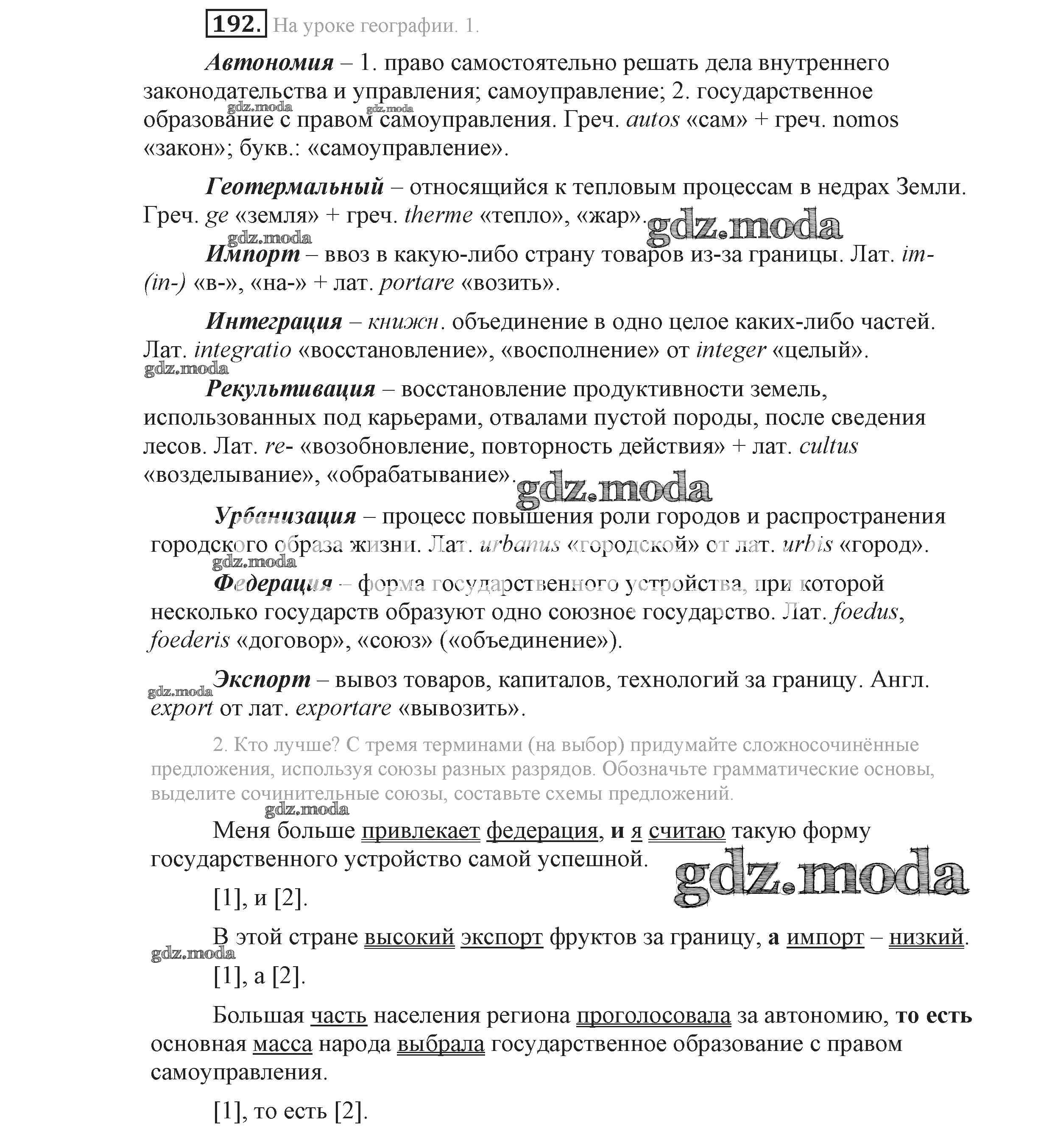 ГДЗ решение к заданию № 192 Русский язык 9 класс Львова С.И. Мнемозина 2016 Часть 1 ФГОС бесплатно на гдз.мода!