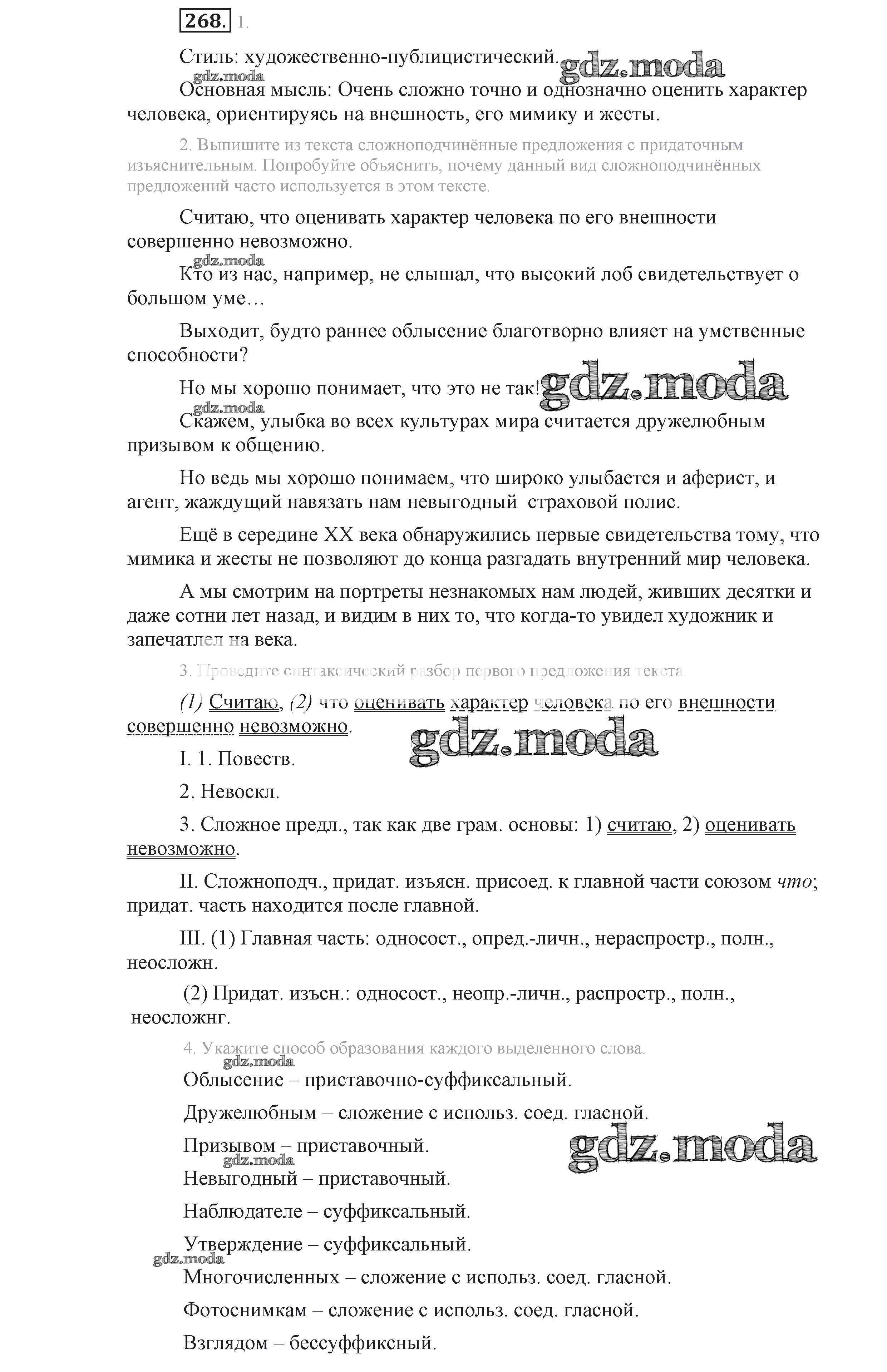 ГДЗ решение к заданию № 268 Русский язык 9 класс Львова С.И. Мнемозина 2016 Часть 1 ФГОС бесплатно на гдз.мода!