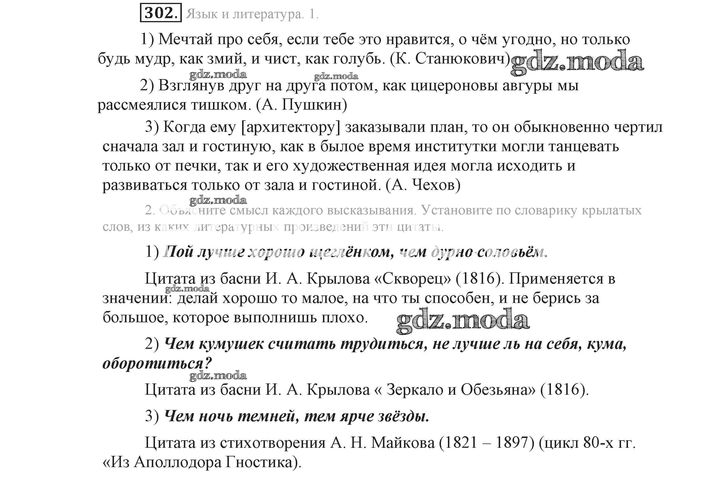 ОТВЕТ на задание № 302 Учебник по Русскому языку 9 класс Львова