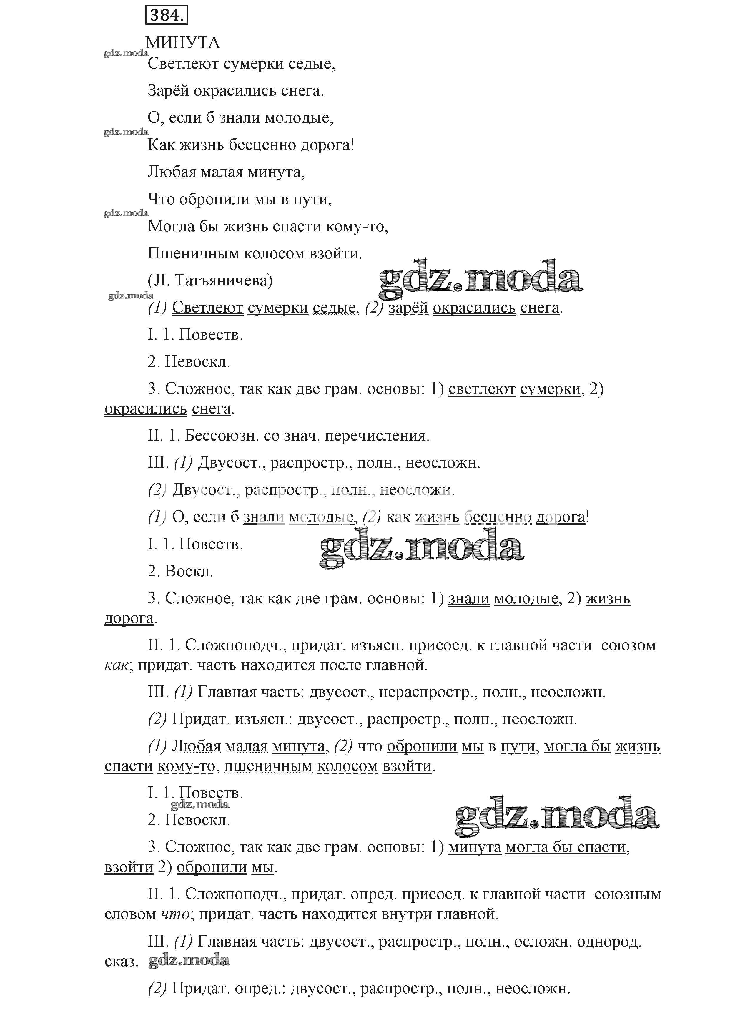 ГДЗ решение к заданию № 384 Русский язык 9 класс Львова С.И. Мнемозина 2016 Часть 1 ФГОС бесплатно на гдз.мода!