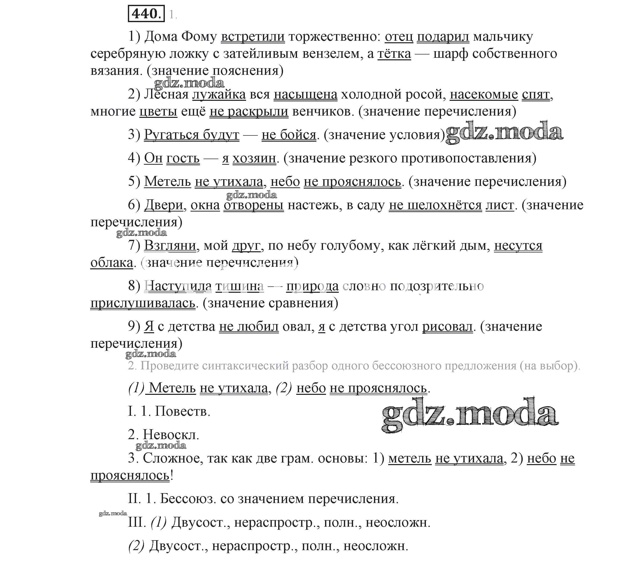 ГДЗ решение к заданию № 440 Русский язык 9 класс Львова С.И. Мнемозина 2016 Часть 1 ФГОС бесплатно на гдз.мода!