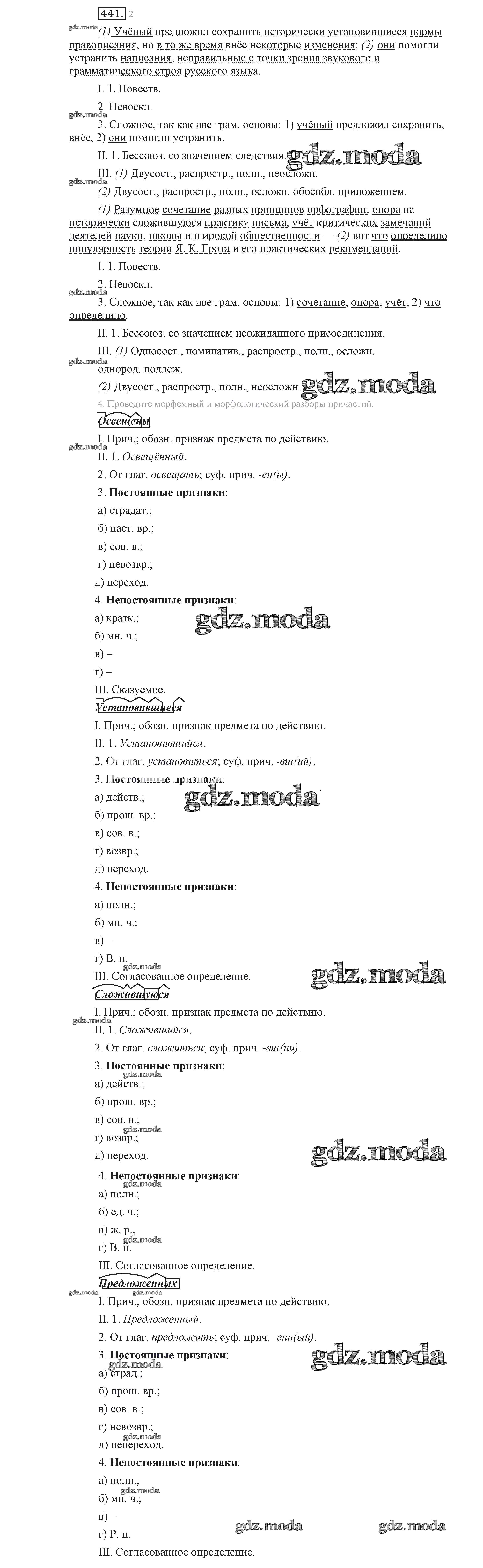 ГДЗ решение к заданию № 441 Русский язык 9 класс Львова С.И. Мнемозина 2016 Часть 1 ФГОС бесплатно на гдз.мода!