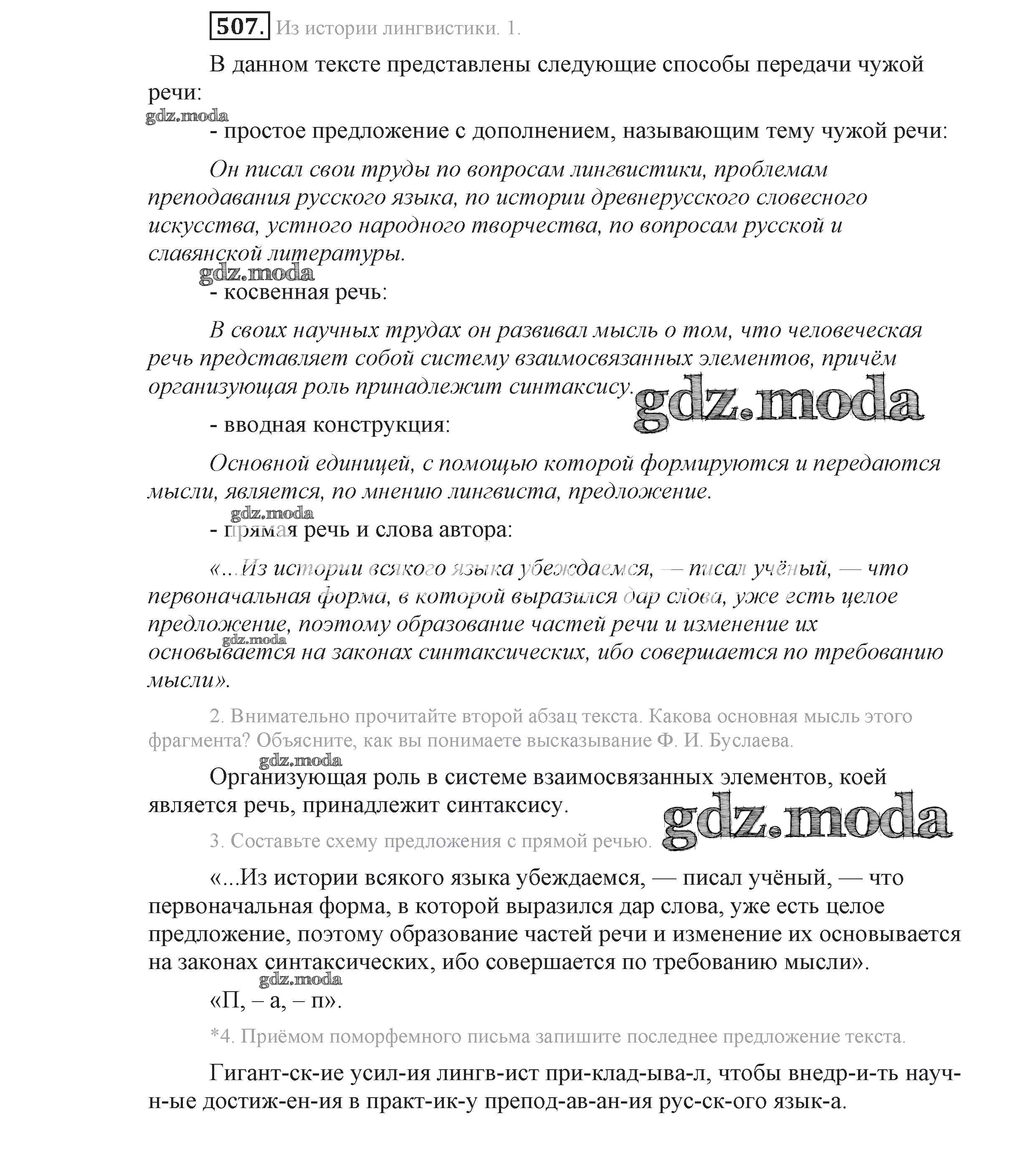ОТВЕТ на задание № 507 Учебник по Русскому языку 9 класс Львова