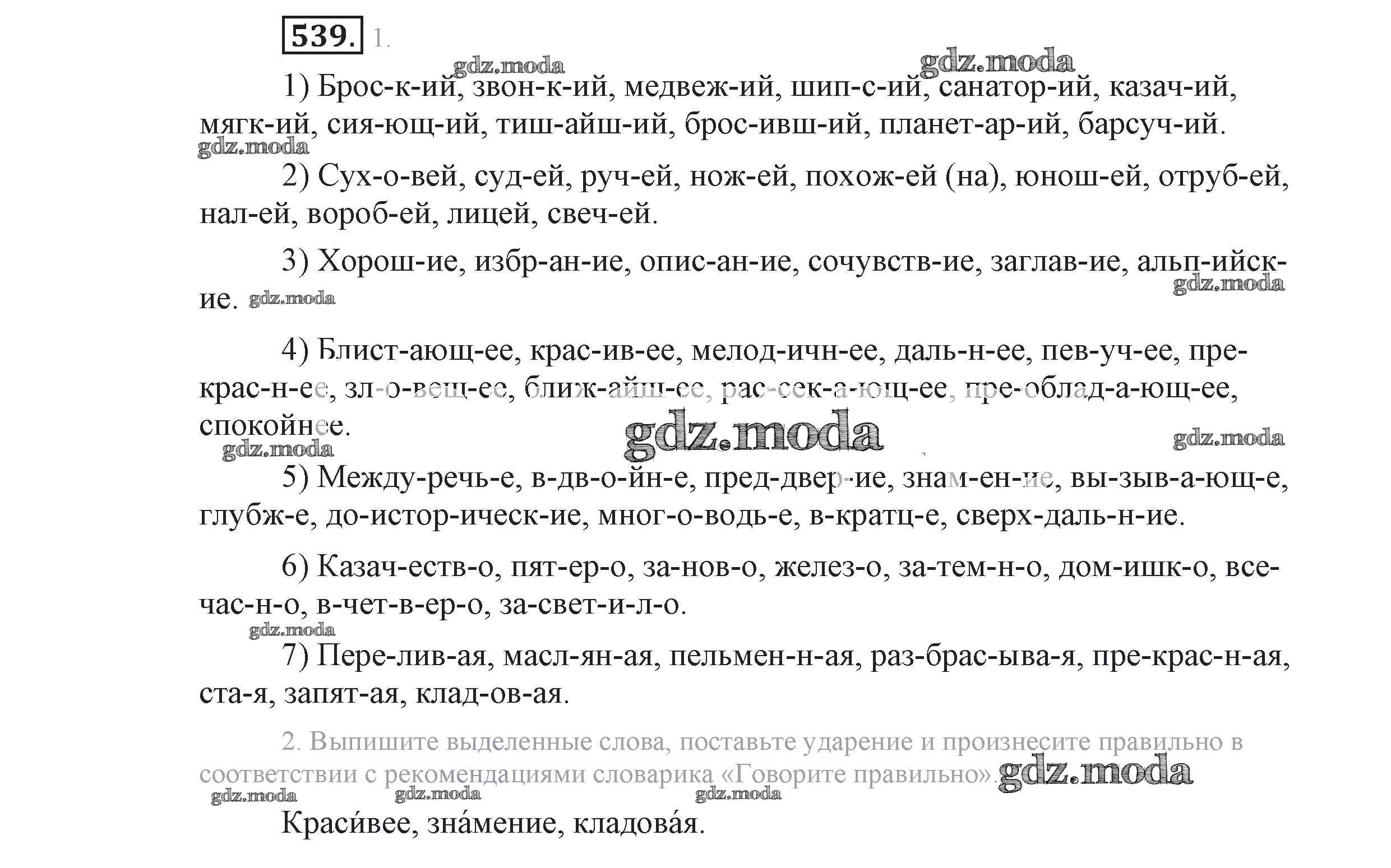ГДЗ решение к заданию № 539 Русский язык 9 класс Львова С.И. Мнемозина 2016 Часть 1 ФГОС бесплатно на гдз.мода!