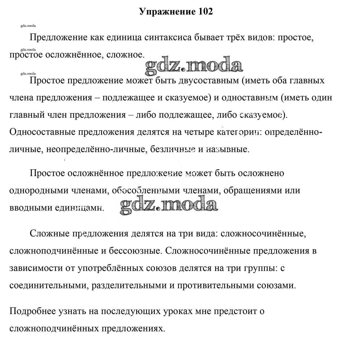 ОТВЕТ на задание № 102 Учебник по Русскому языку 9 класс Мурина