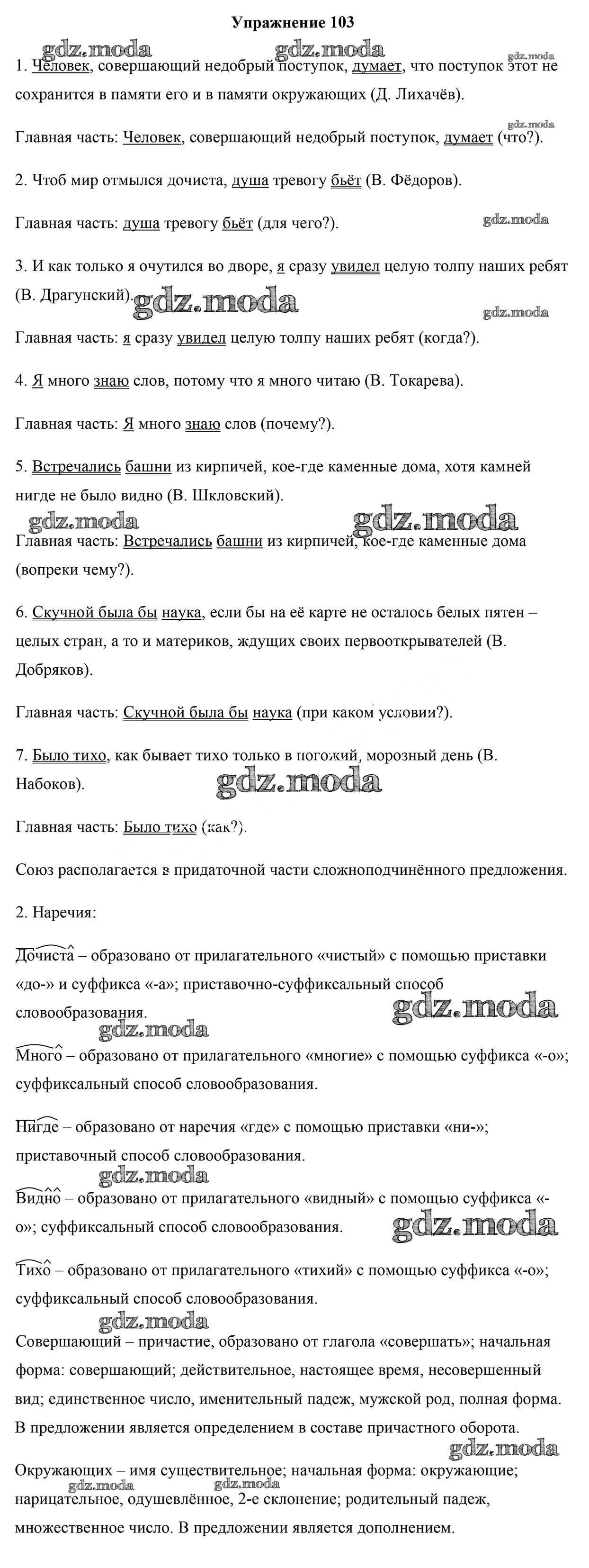 ОТВЕТ на задание № 103 Учебник по Русскому языку 9 класс Мурина
