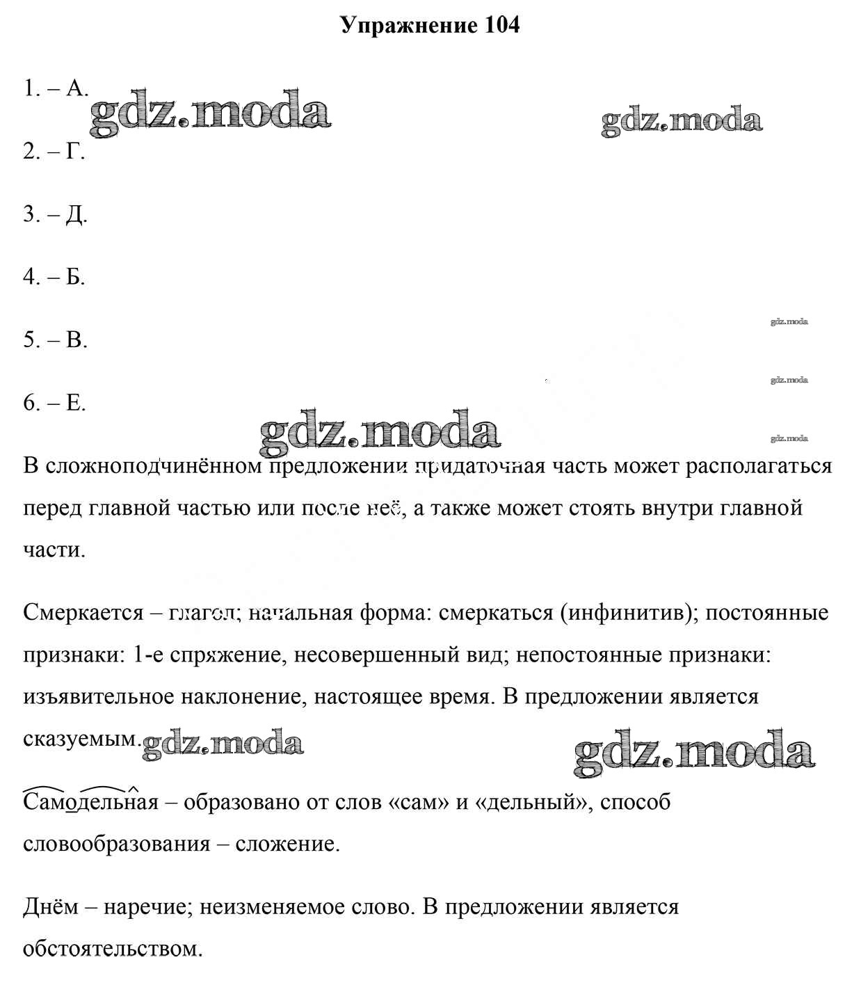 ГДЗ решение к заданию № 104 Русский язык 9 класс Мурина Л.A Национальный институт образования 2011 ФГОС бесплатно на гдз.мода!