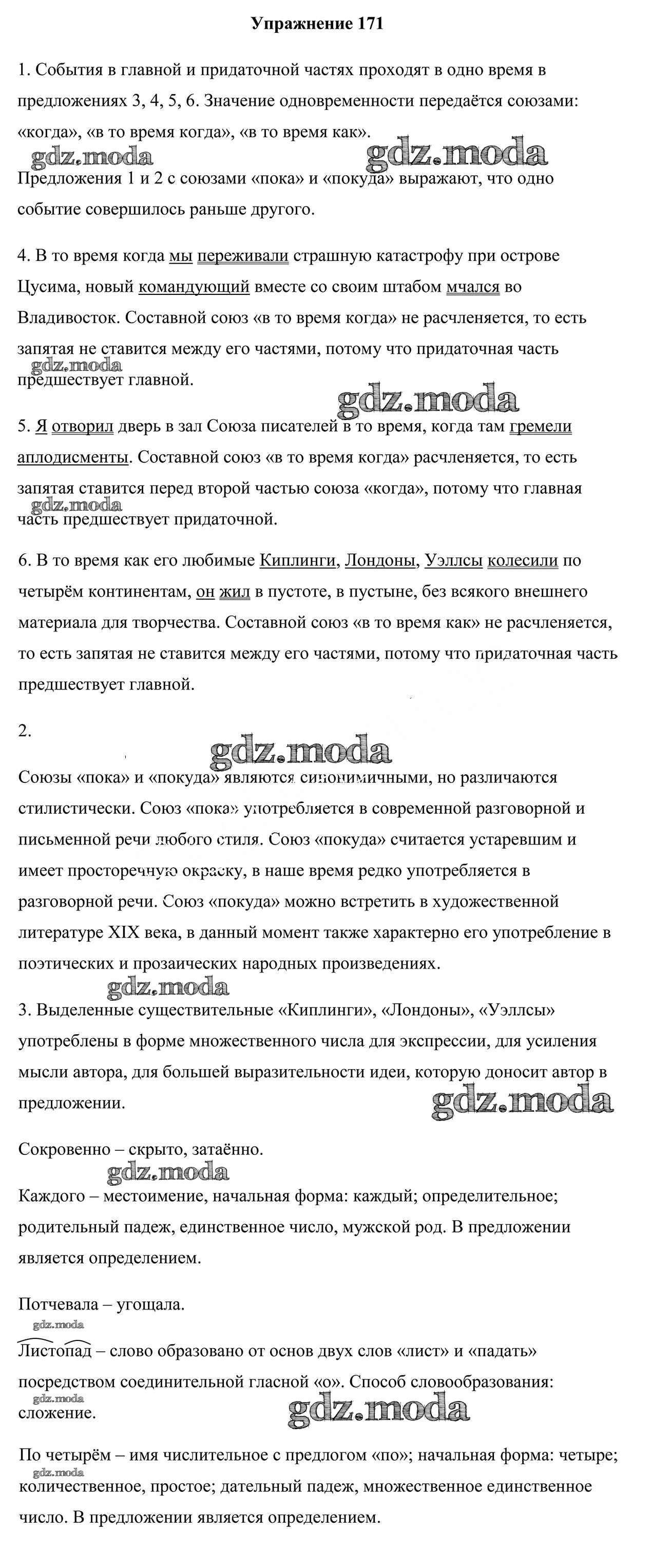 ОТВЕТ на задание № 171 Учебник по Русскому языку 9 класс Мурина