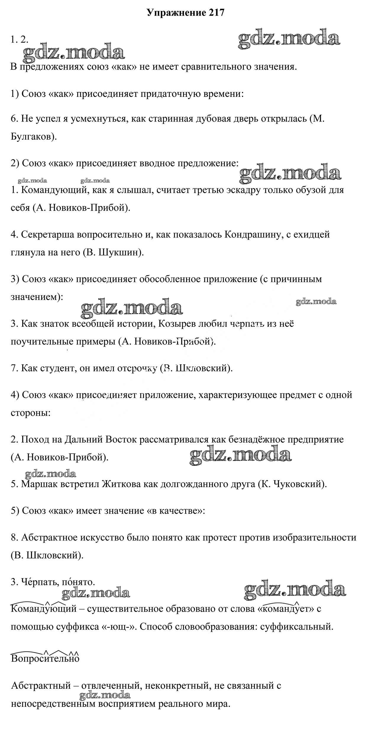 ОТВЕТ на задание № 217 Учебник по Русскому языку 9 класс Мурина
