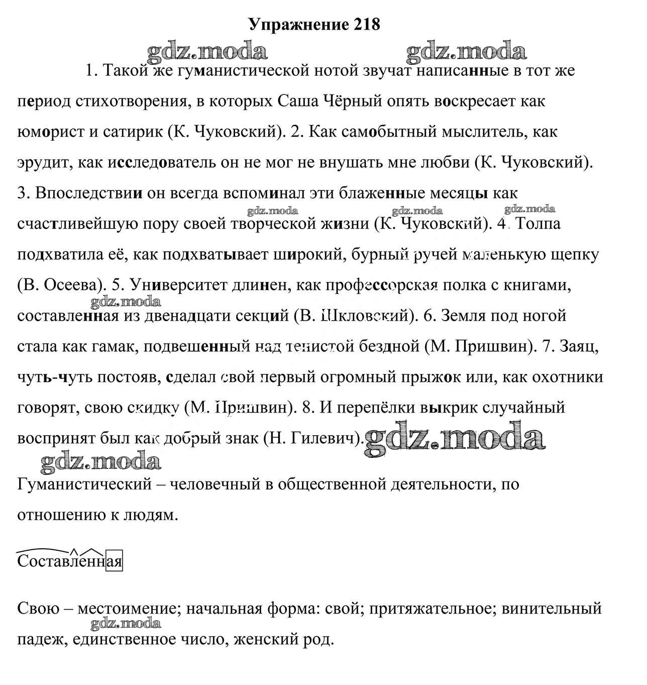ОТВЕТ на задание № 218 Учебник по Русскому языку 9 класс Мурина