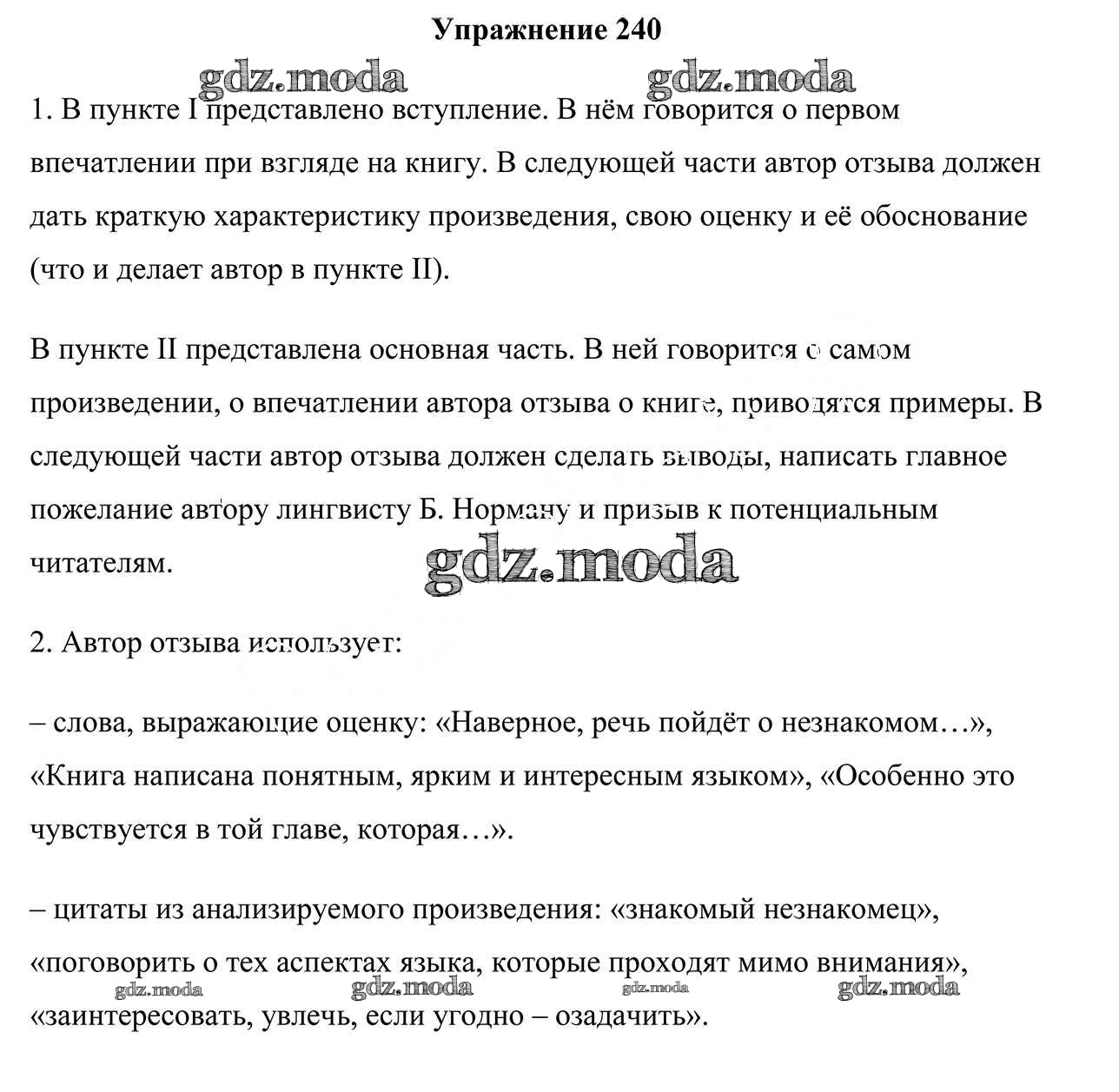 ГДЗ решение к заданию № 240 Русский язык 9 класс Мурина Л.A Национальный институт образования 2011 ФГОС бесплатно на гдз.мода!