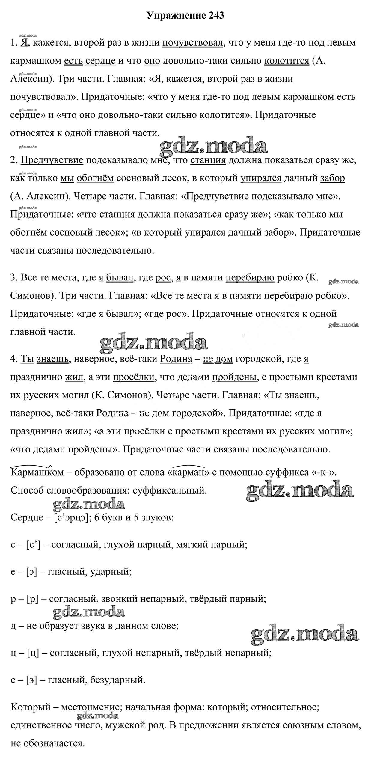 ОТВЕТ на задание № 243 Учебник по Русскому языку 9 класс Мурина
