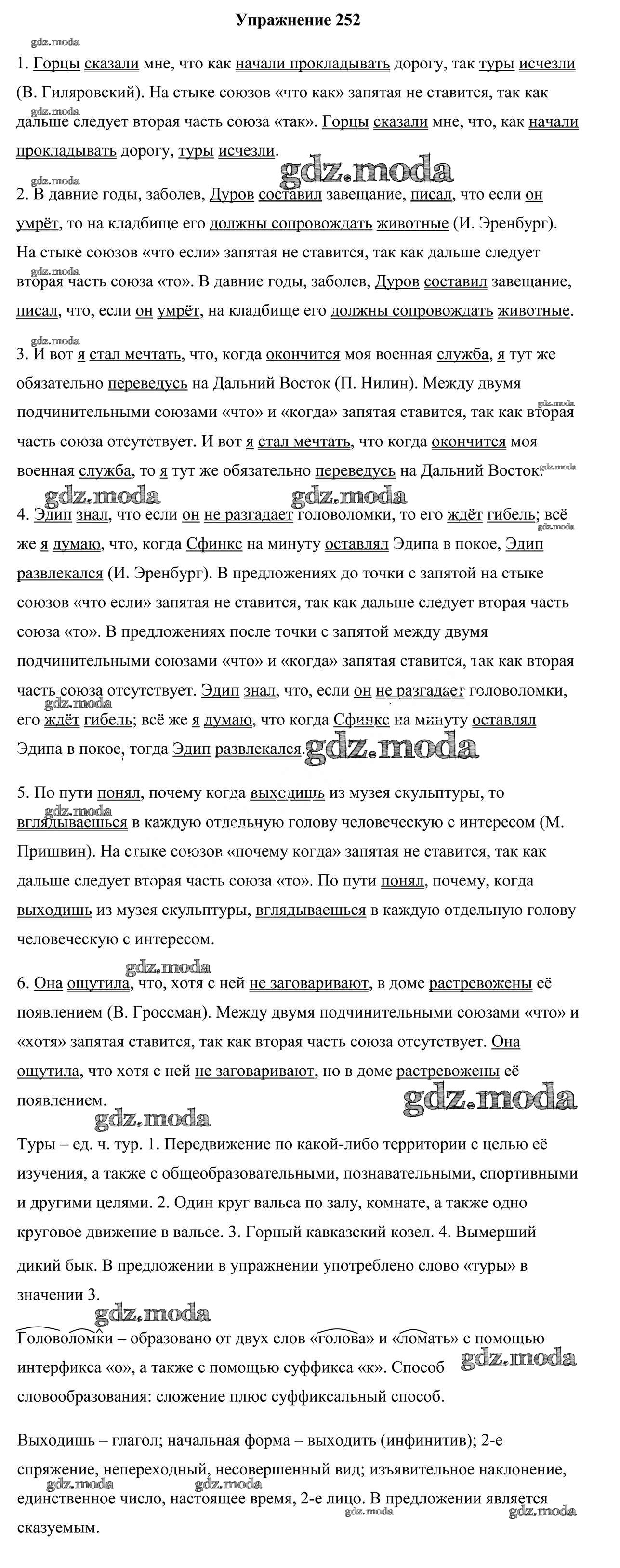ОТВЕТ на задание № 252 Учебник по Русскому языку 9 класс Мурина