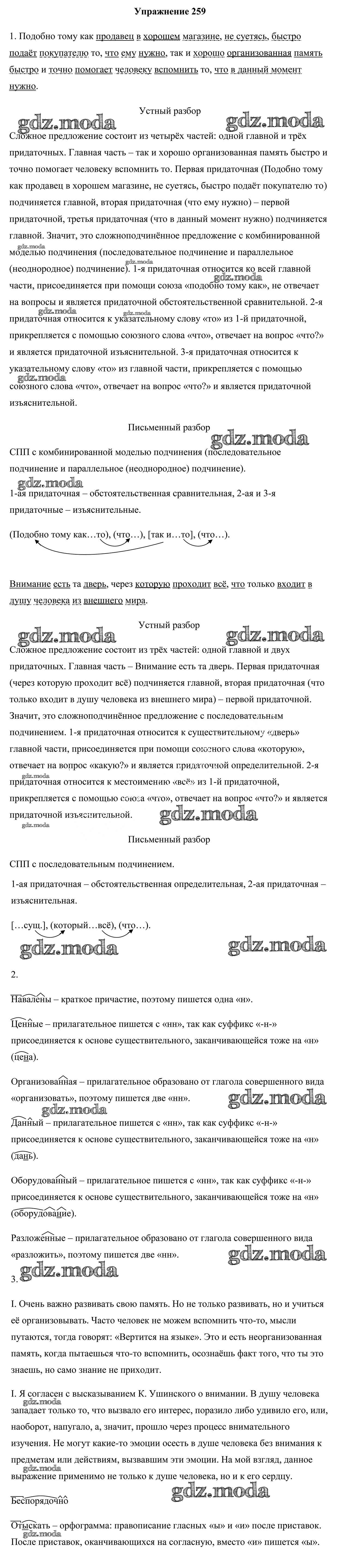 ОТВЕТ на задание № 259 Учебник по Русскому языку 9 класс Мурина