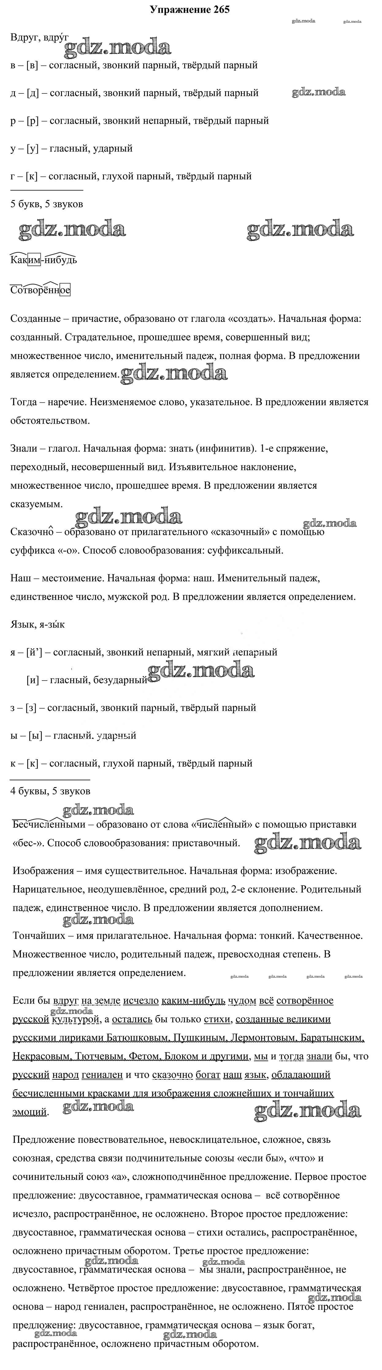 ОТВЕТ на задание № 265 Учебник по Русскому языку 9 класс Мурина