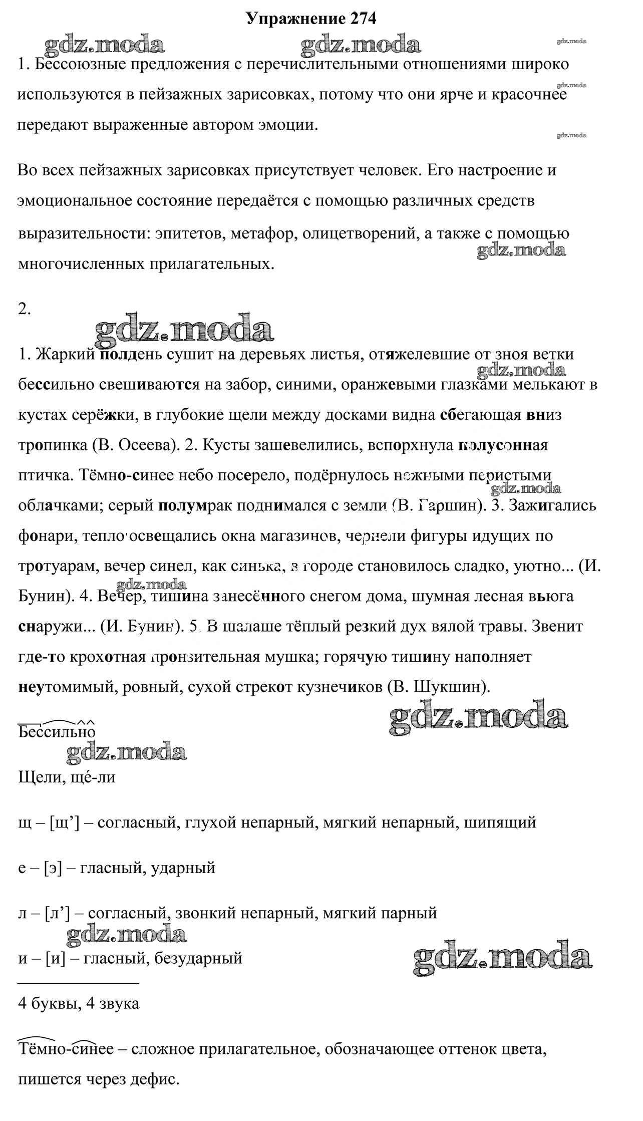 ГДЗ решение к заданию № 274 Русский язык 9 класс Мурина Л.A Национальный институт образования 2011 ФГОС бесплатно на гдз.мода!