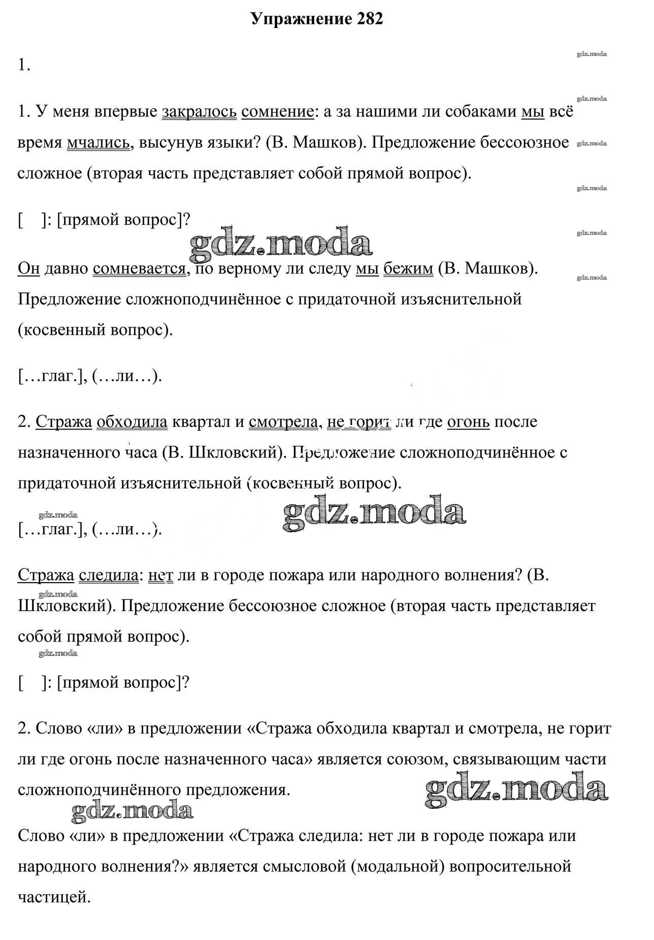 ОТВЕТ на задание № 282 Учебник по Русскому языку 9 класс Мурина