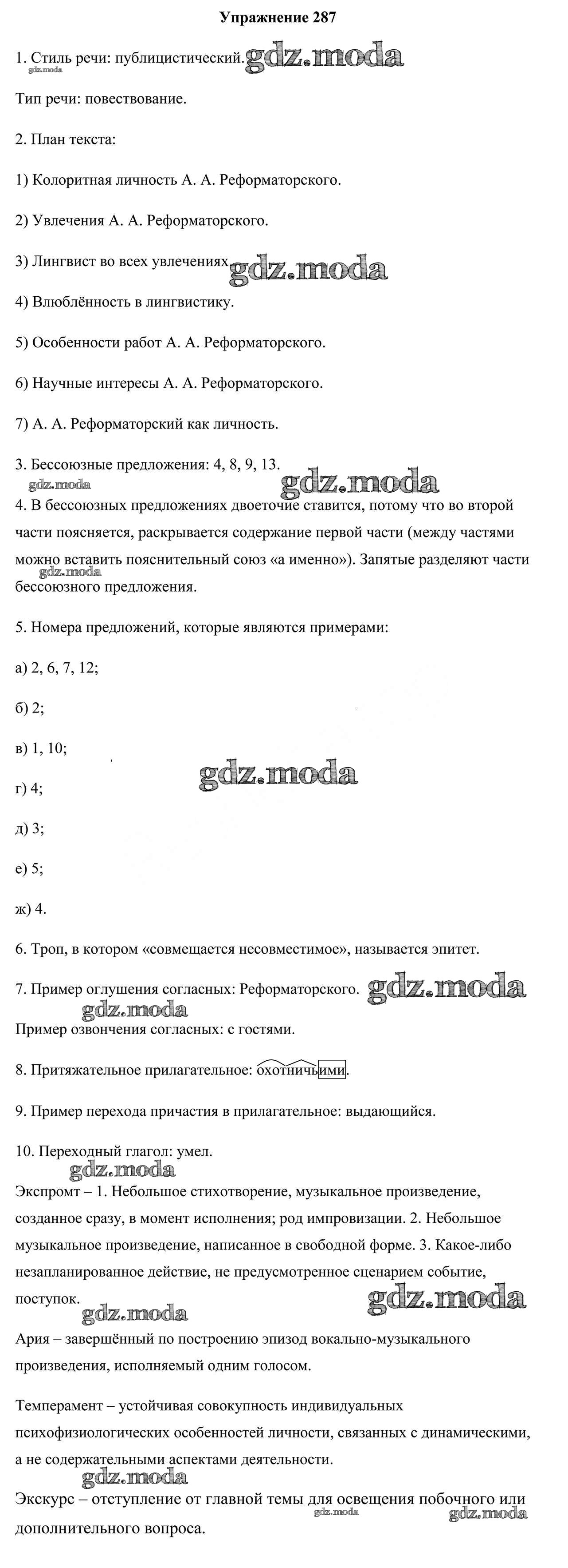 ОТВЕТ на задание № 287 Учебник по Русскому языку 9 класс Мурина