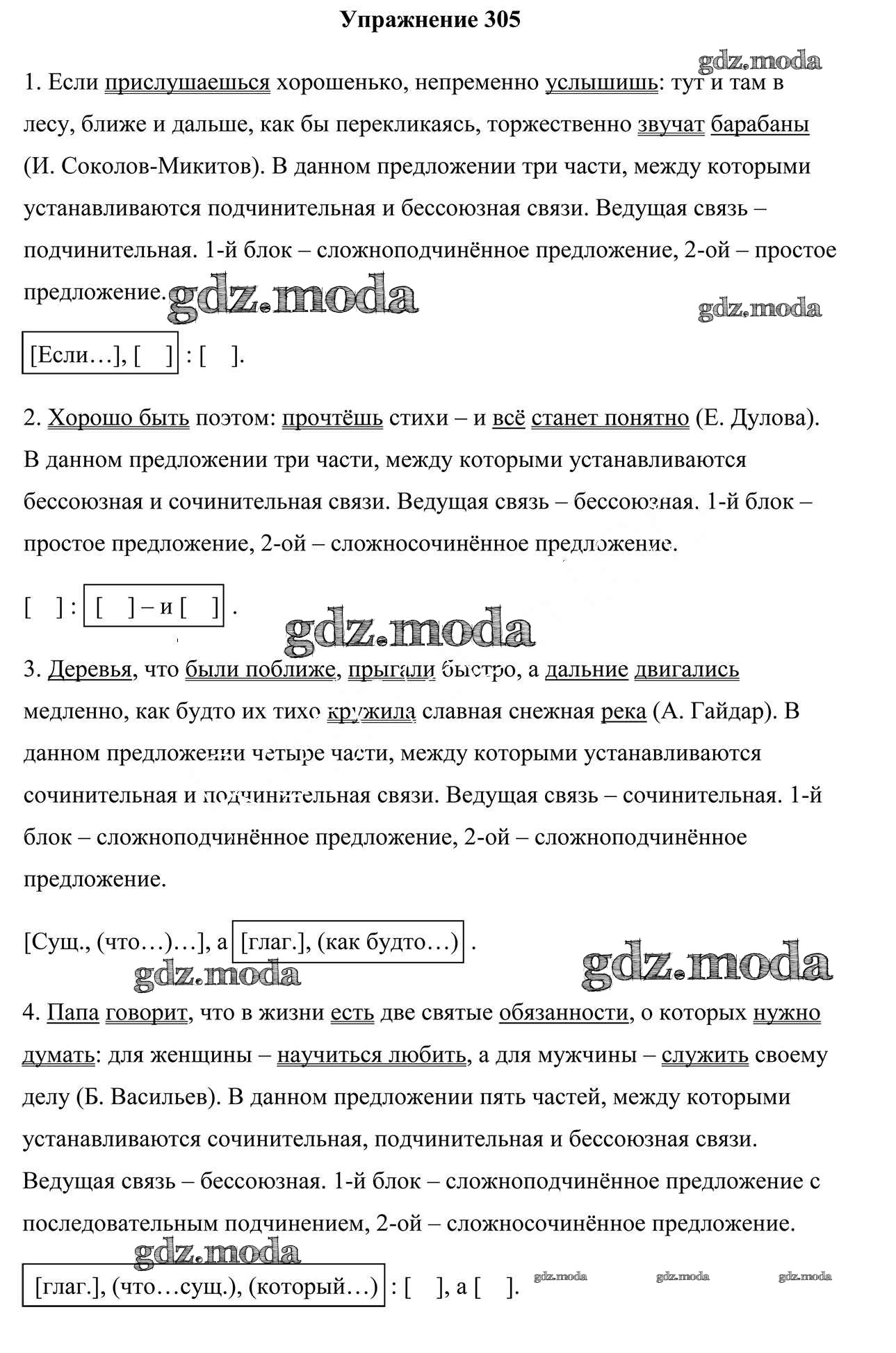 ОТВЕТ на задание № 305 Учебник по Русскому языку 9 класс Мурина