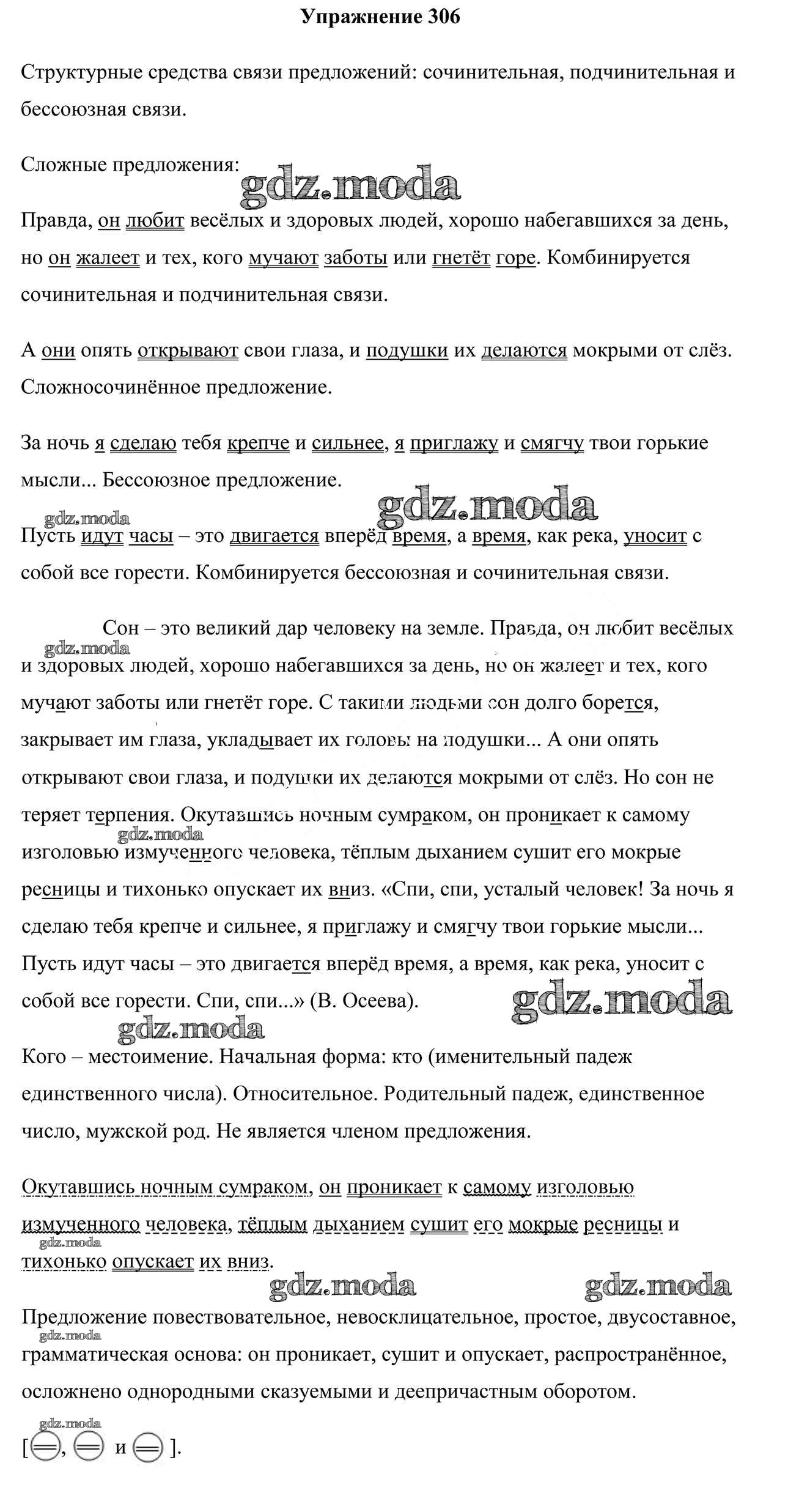 ОТВЕТ на задание № 306 Учебник по Русскому языку 9 класс Мурина