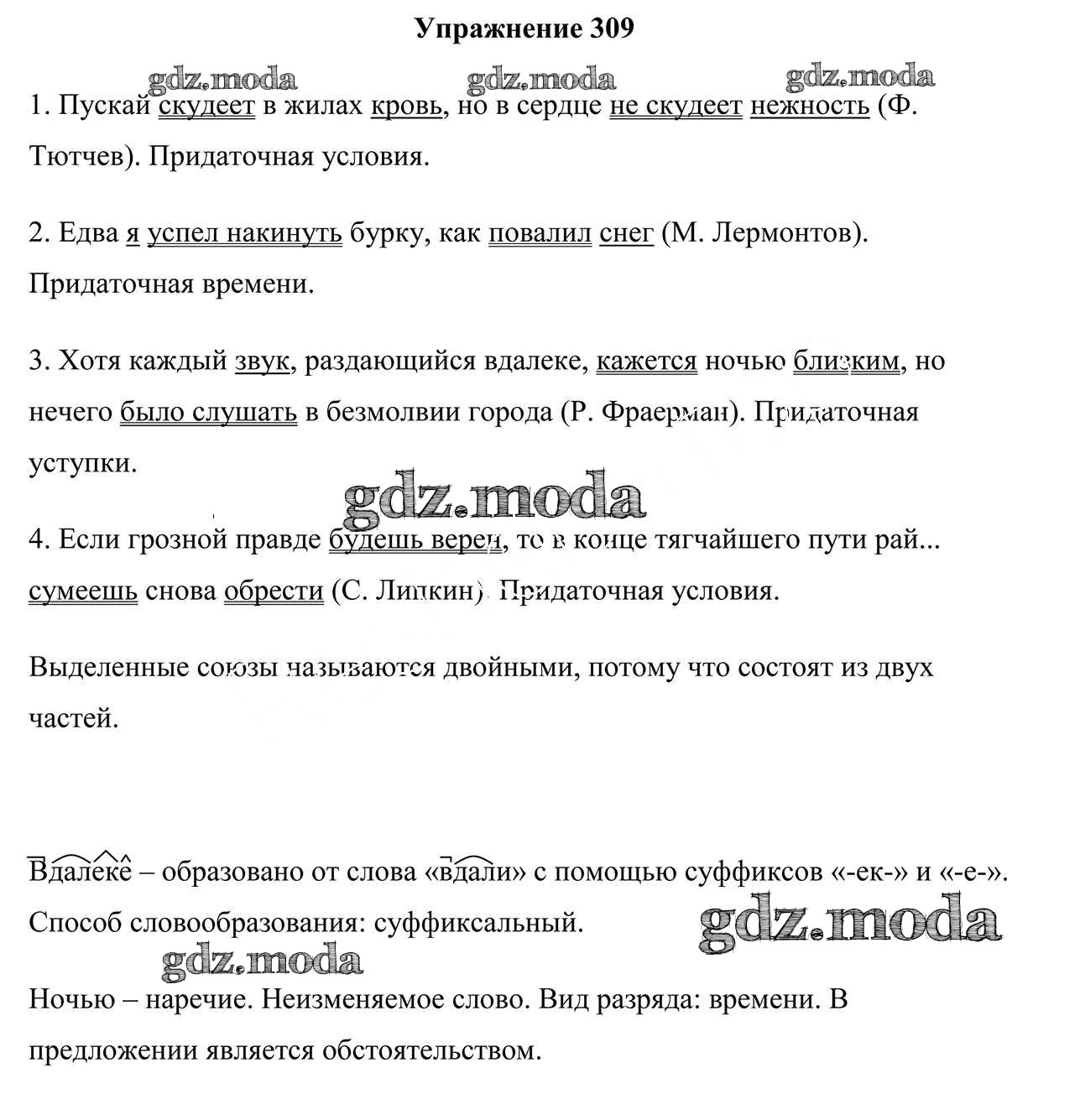 ГДЗ решение к заданию № 309 Русский язык 9 класс Мурина Л.A Национальный институт образования 2011 ФГОС бесплатно на гдз.мода!