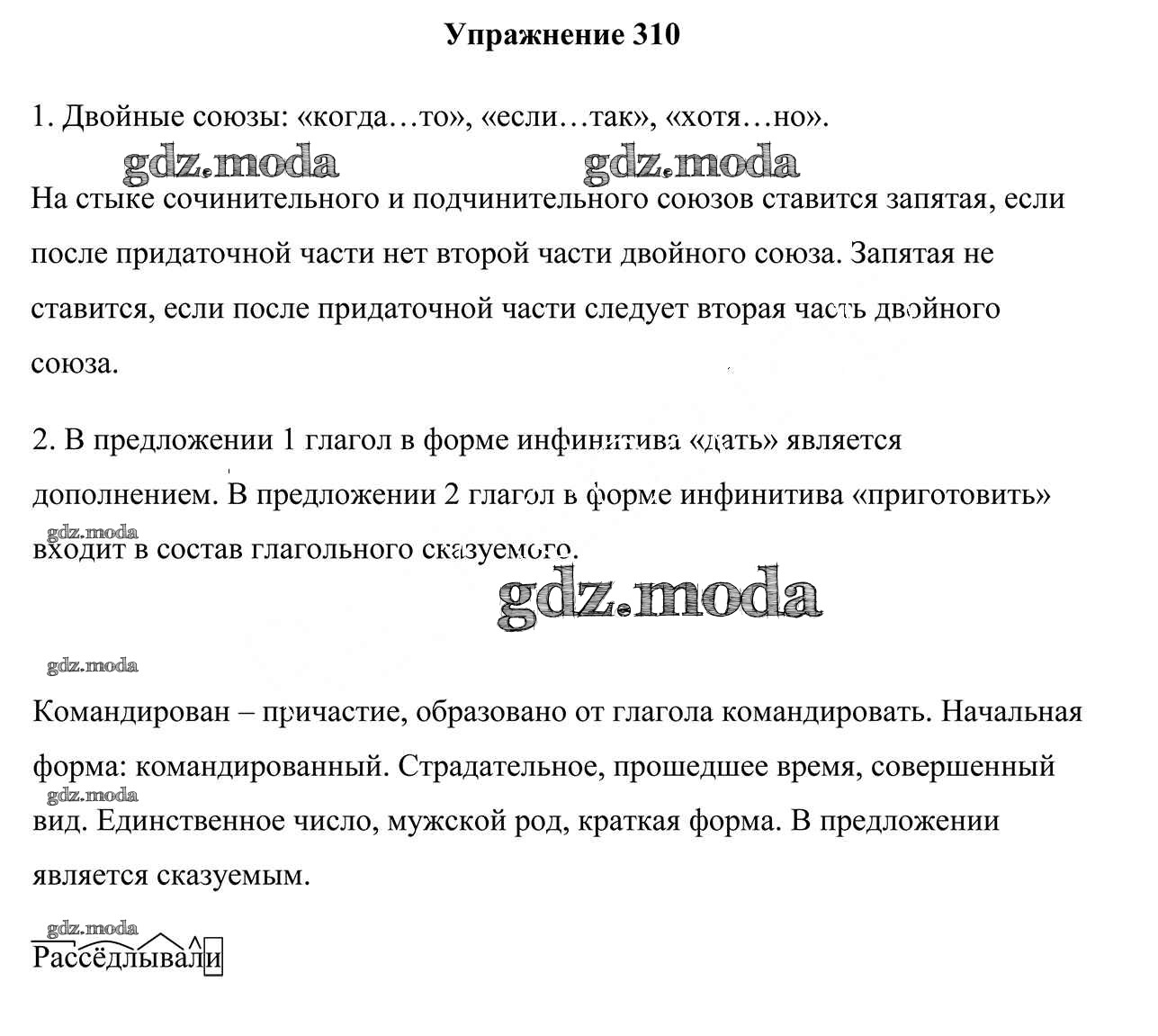 ОТВЕТ на задание № 310 Учебник по Русскому языку 9 класс Мурина