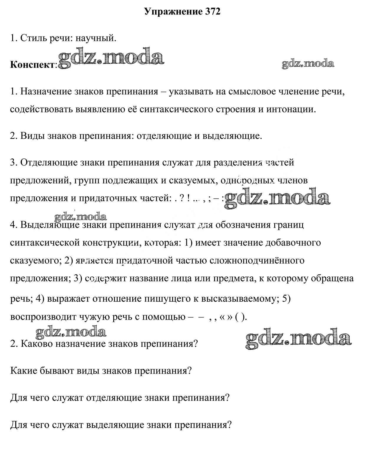 ОТВЕТ на задание № 372 Учебник по Русскому языку 9 класс Мурина
