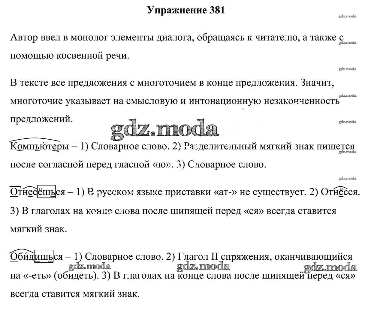 ОТВЕТ на задание № 381 Учебник по Русскому языку 9 класс Мурина