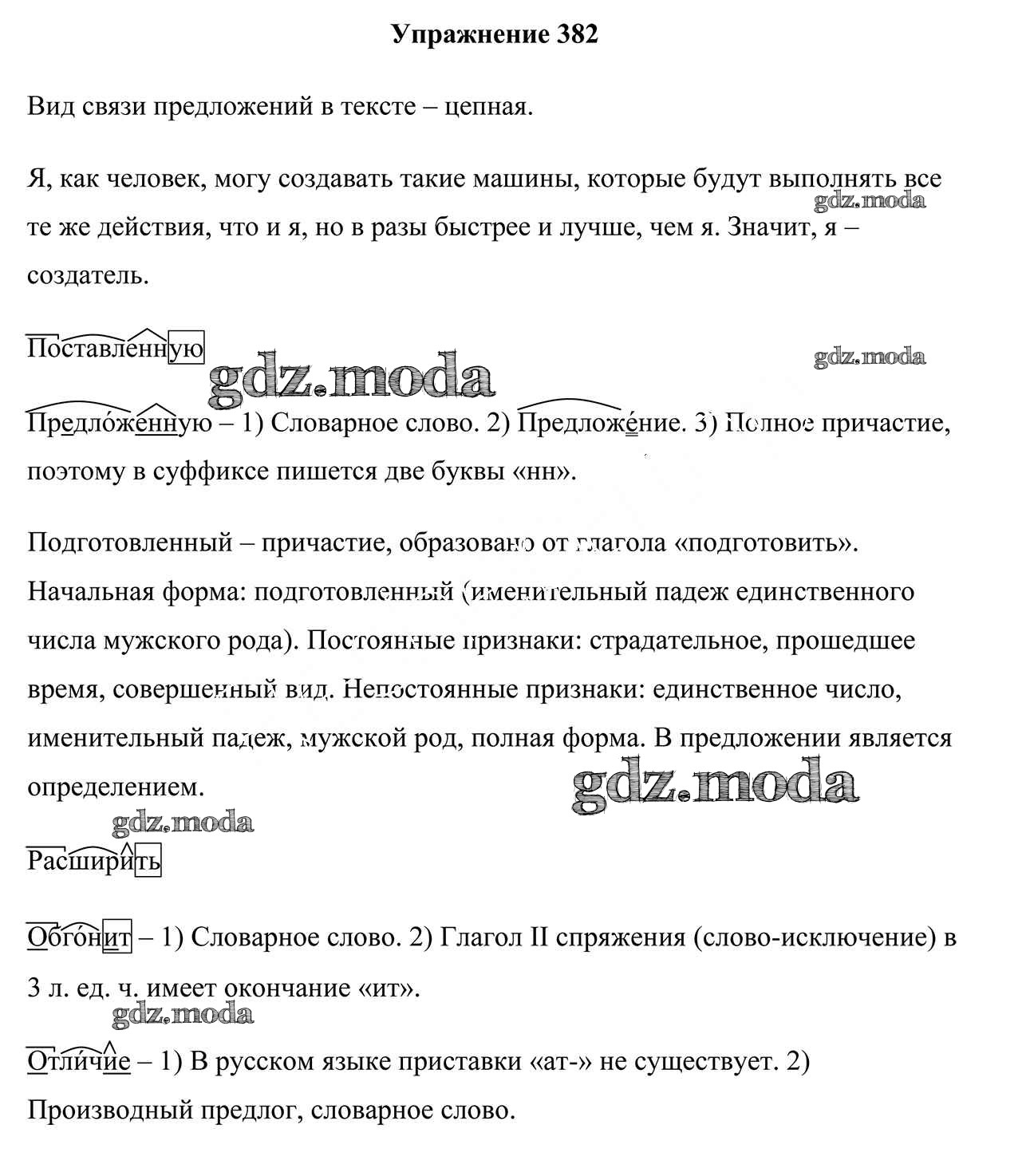 ОТВЕТ на задание № 382 Учебник по Русскому языку 9 класс Мурина