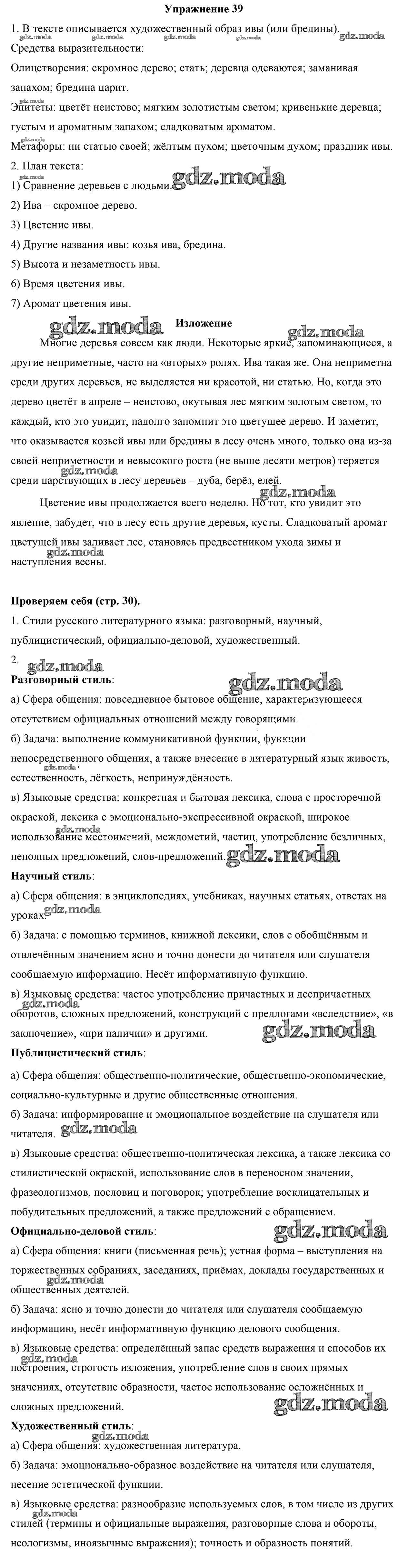 ГДЗ решение к заданию № 39 Русский язык 9 класс Мурина Л.A Национальный институт образования 2011 ФГОС бесплатно на гдз.мода!