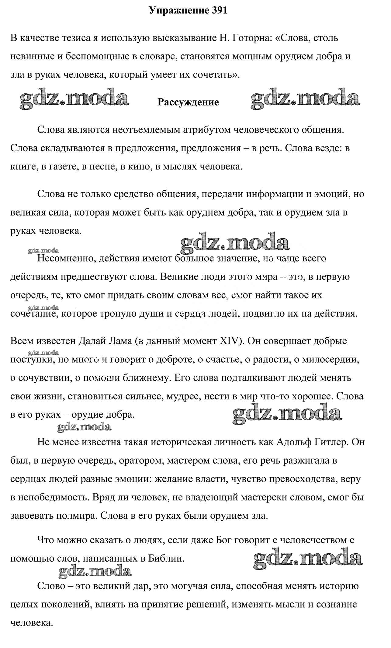 ГДЗ решение к заданию № 391 Русский язык 9 класс Мурина Л.A Национальный институт образования 2011 ФГОС бесплатно на гдз.мода!
