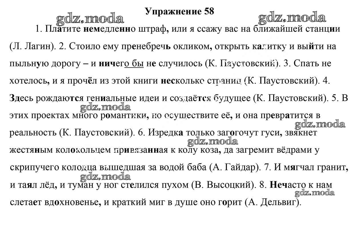 ГДЗ решение к заданию № 58 Русский язык 9 класс Мурина Л.A Национальный институт образования 2011 ФГОС бесплатно на гдз.мода!