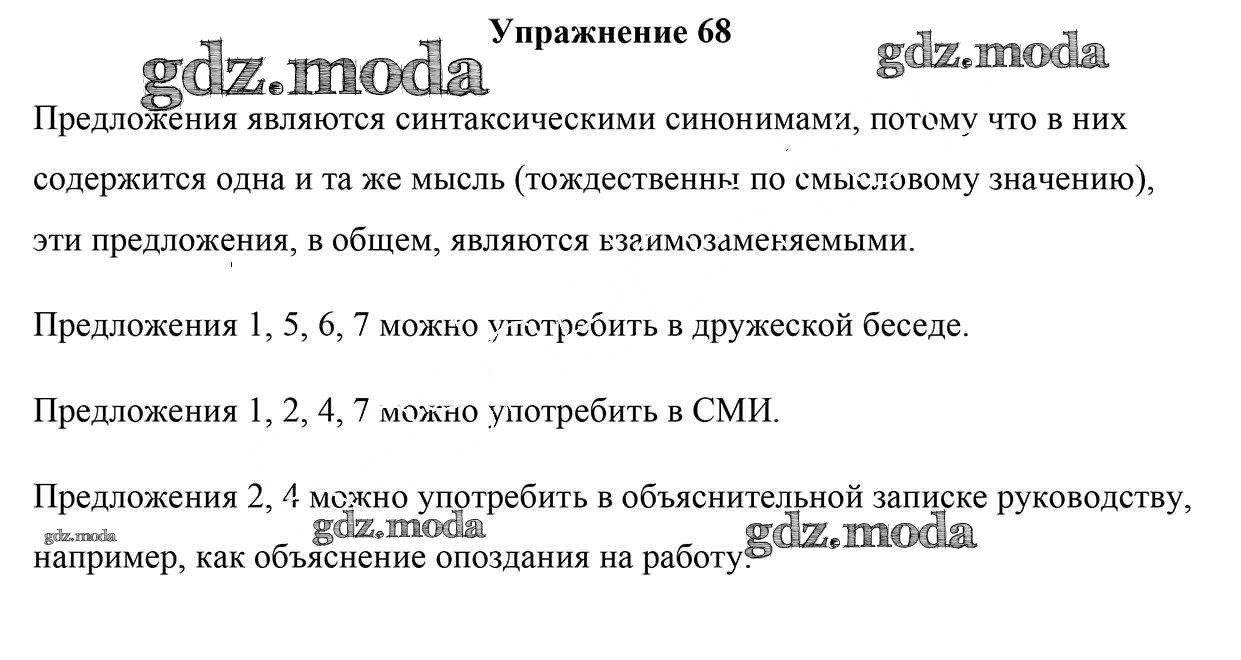 ОТВЕТ на задание № 68 Учебник по Русскому языку 9 класс Мурина