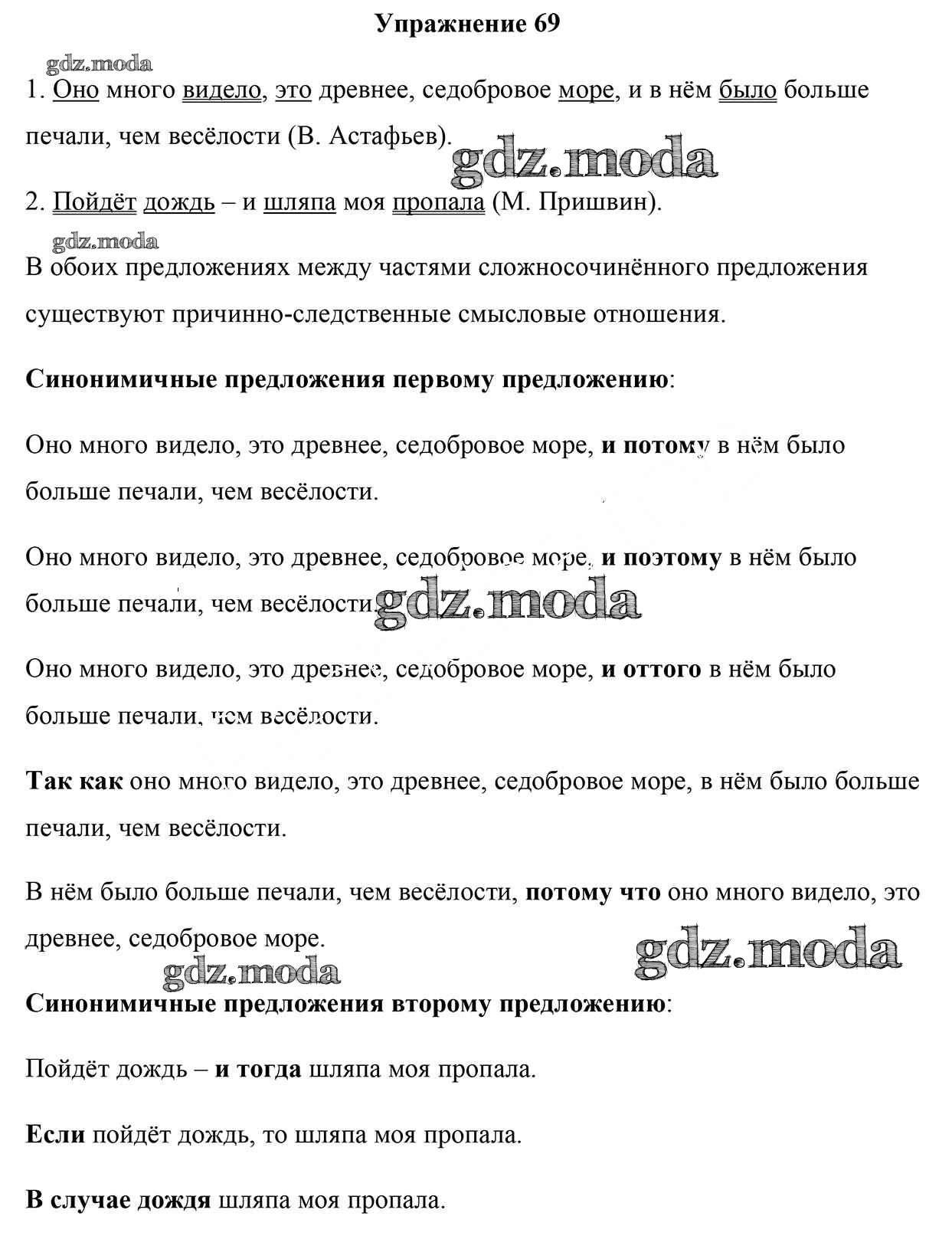 ОТВЕТ на задание № 69 Учебник по Русскому языку 9 класс Мурина
