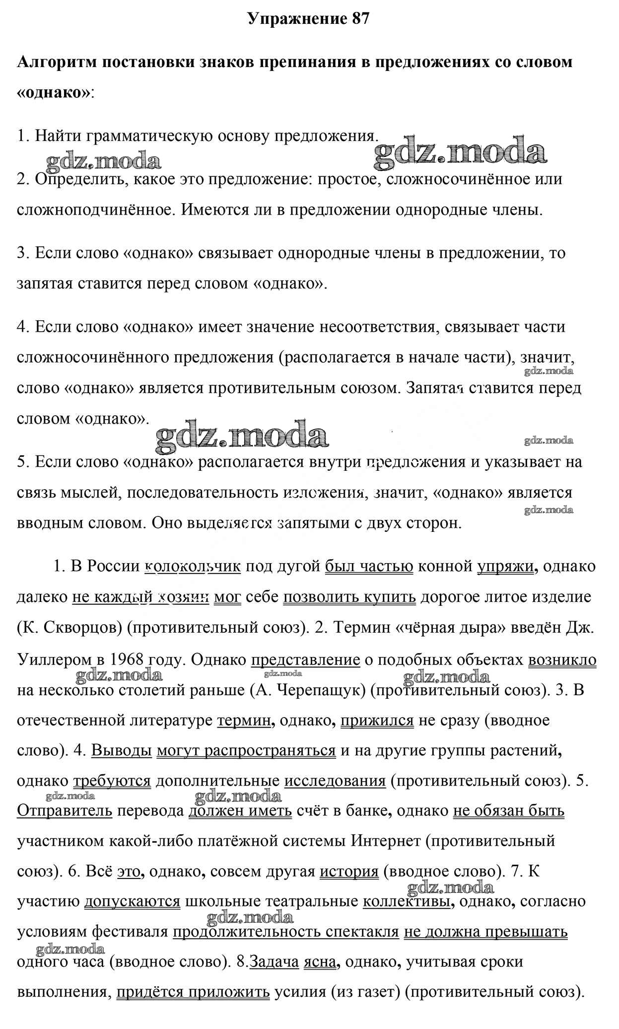 ГДЗ решение к заданию № 87 Русский язык 9 класс Мурина Л.A Национальный институт образования 2011 ФГОС бесплатно на гдз.мода!